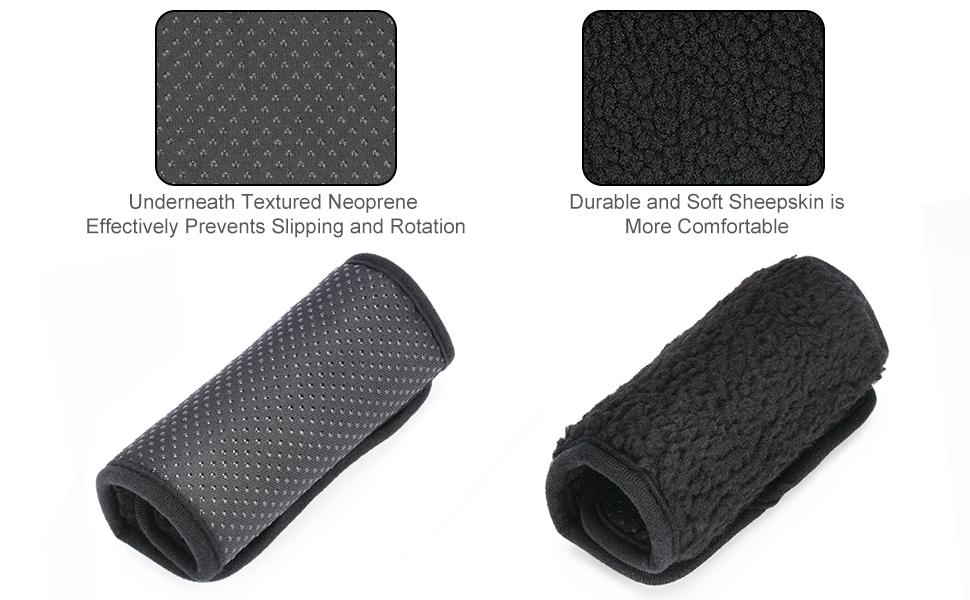 - Made of durable and soft sheepskin; the textured rubber grain effectively prevents slipping and provides a safer grip, keeping the padded grip stable and not easy to fall off