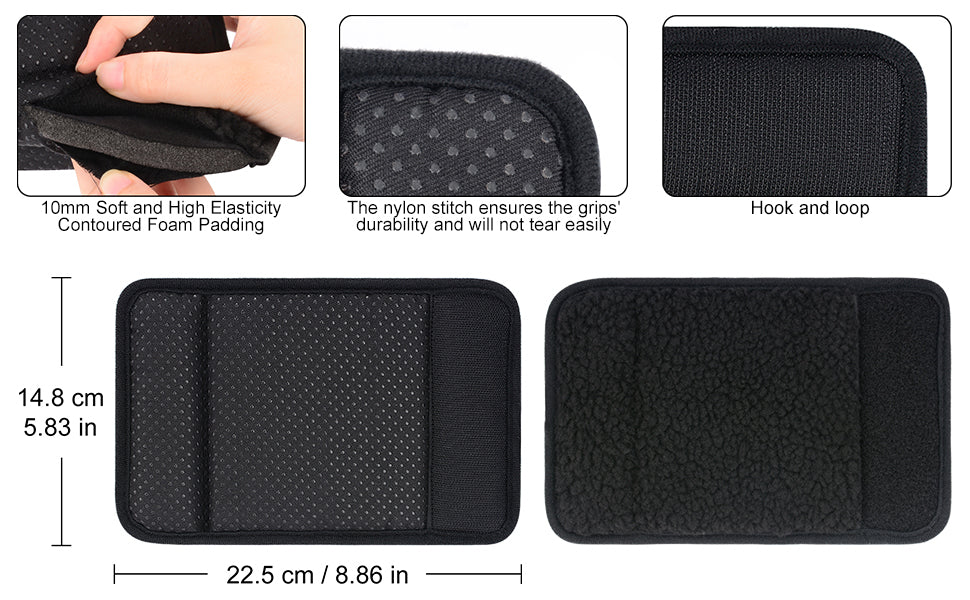 - 2 packs for each set; the handle is filled with foam, which not only helps to evenly distribute the pressure, but also keeps shape and extend service life; the hook and loop design makes it easy to install and disassemble