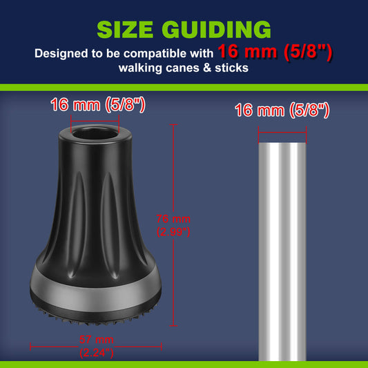 Walking Cane Tips 5/8" (2-Pack) – Heavy Duty Non-Slip Rubber Replacement Ends