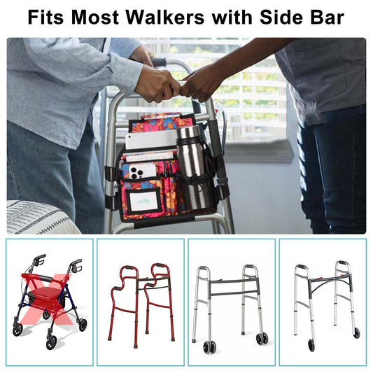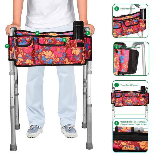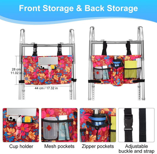 Walker Basket with Cup Holder, Foldable No-Tip Storage Bag
