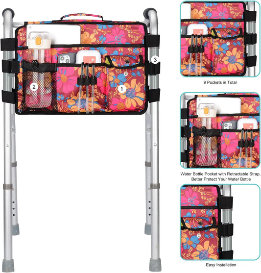 Walker Basket, Foldable Bag with Tray, Cup Holder
