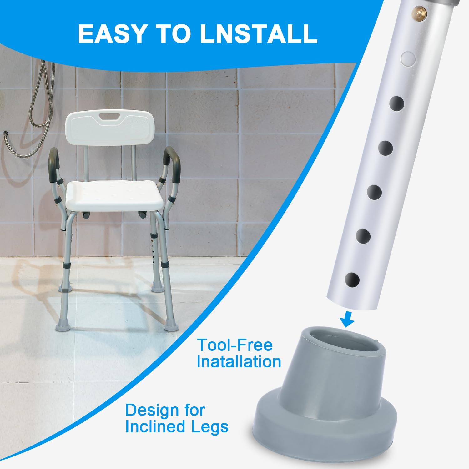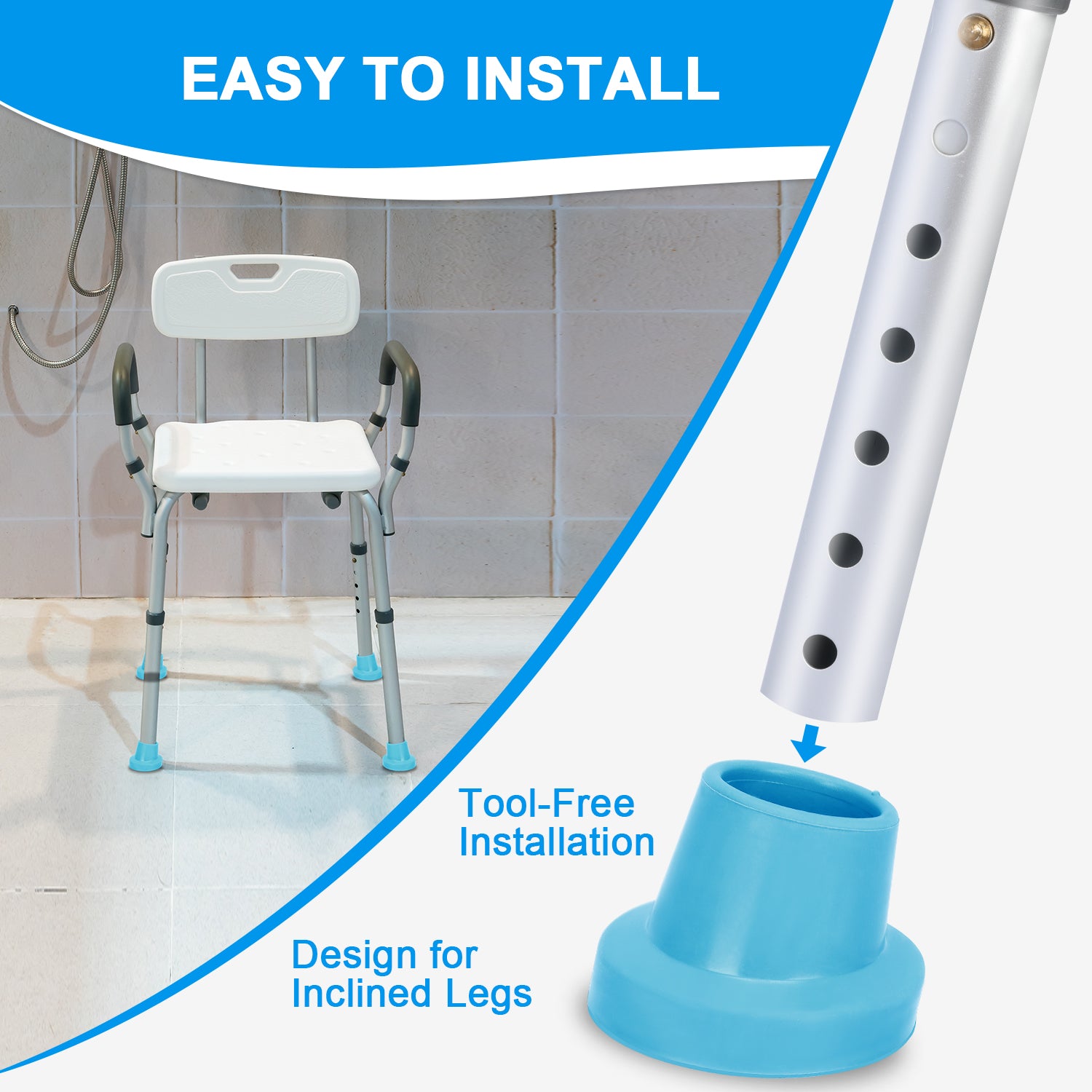- Enhanced Safety and Stability: featuring a unique sloped leg design, these feet help distribute your weight over a larger area, ensuring stability for your bath chair; the bottom drainage hole design aids in water drainage, preventing water buildup in the shower stool; equipped with suction cups, they provide superior grip and slip resistance