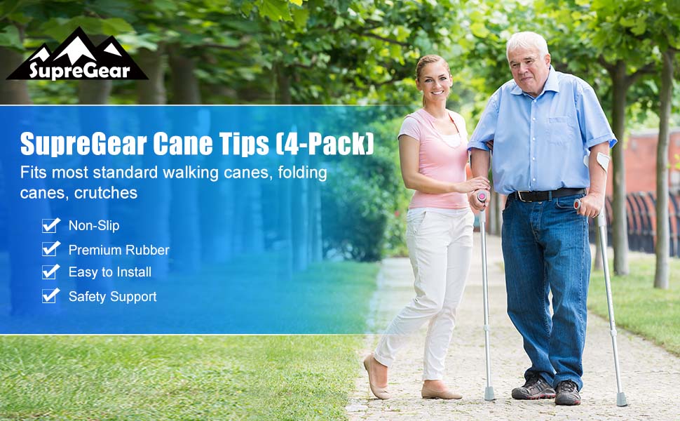 - Non-Slip Traction Base: 4-pack set SupreGear cane tip helps provide added balance and stability on almost any surface, such as grass, stairs, sand, and more, which is great to use as a replacement for original or add-on