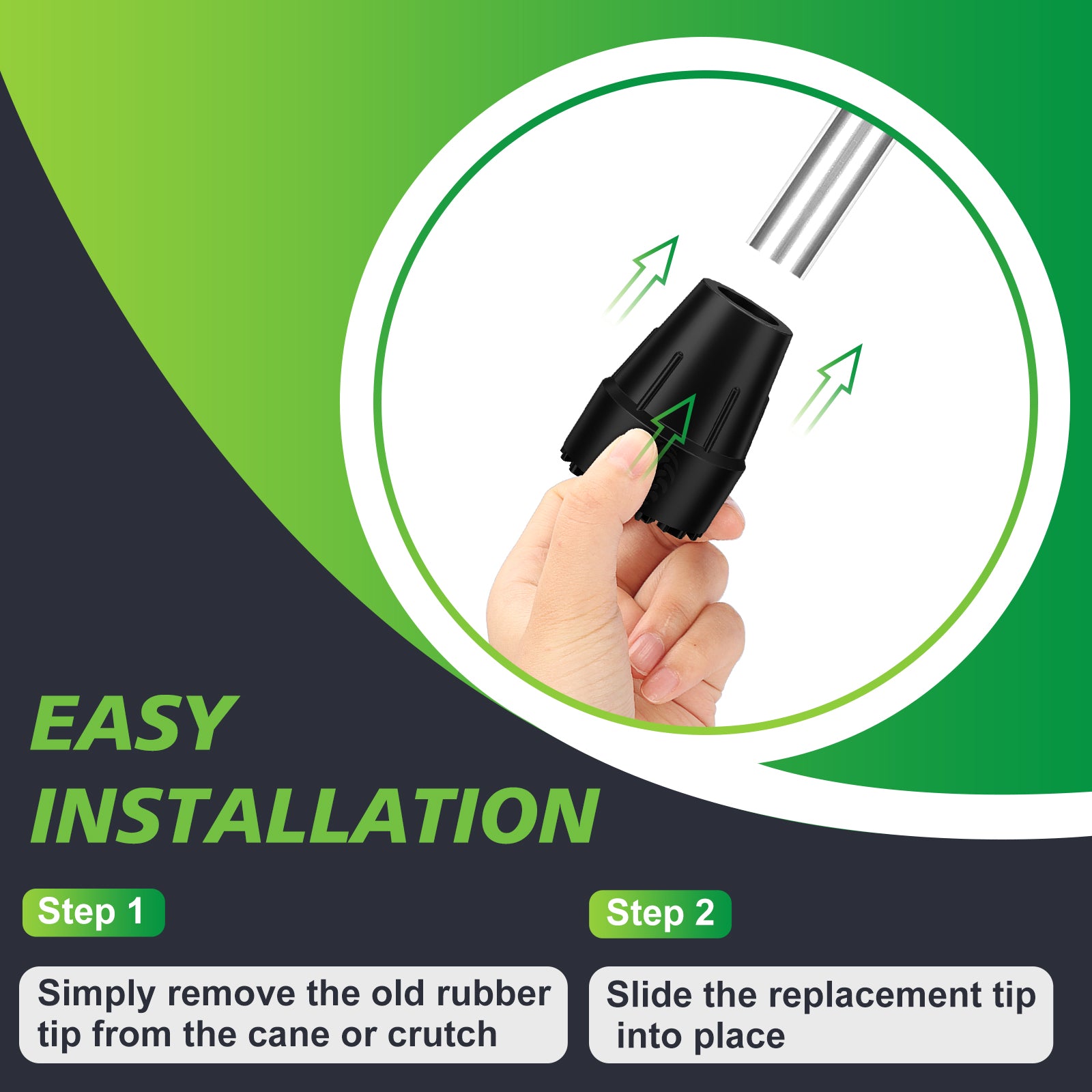 - Easy Installation: the simple structure allows for quick disassembly and installation; simply remove the old rubber tip from the cane or crutch, and then slide the replacement tip into place, making replacements quick and straightforward; they are perfect for replacing worn-out tips on walking sticks and canes, ensuring safety for seniors and the elderly