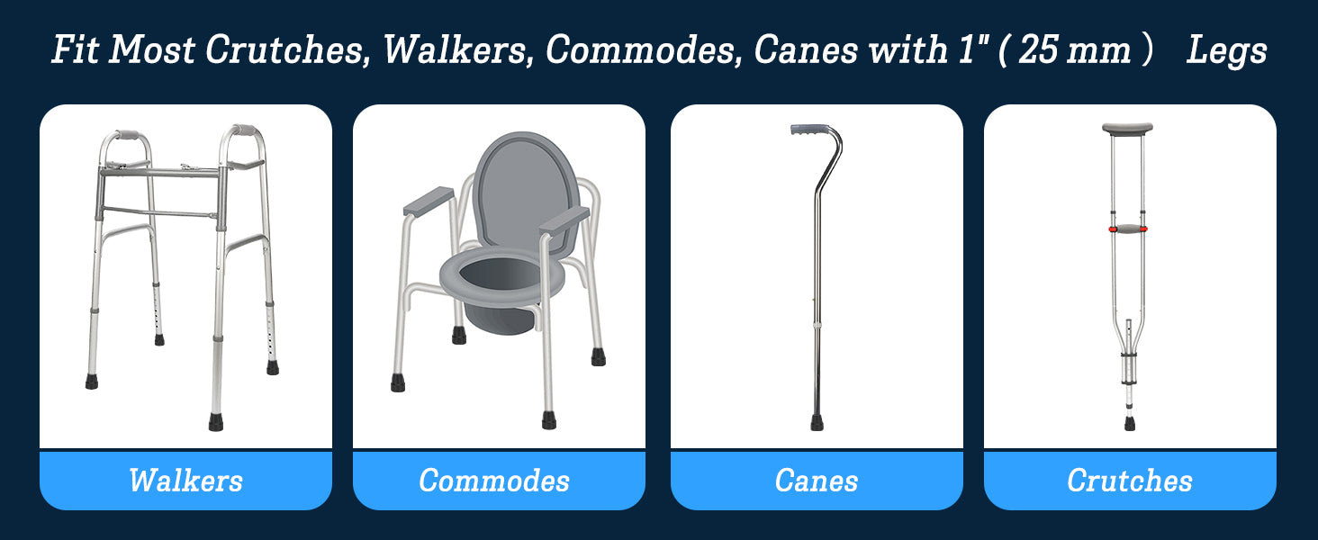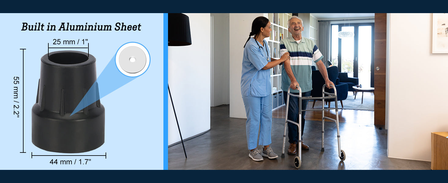 - Cane Tips Replacement: 4pcs cane tips 1 inch included, fit most aluminum and wood crutches, walkers, commodes, standard and folding canes with 1" legs