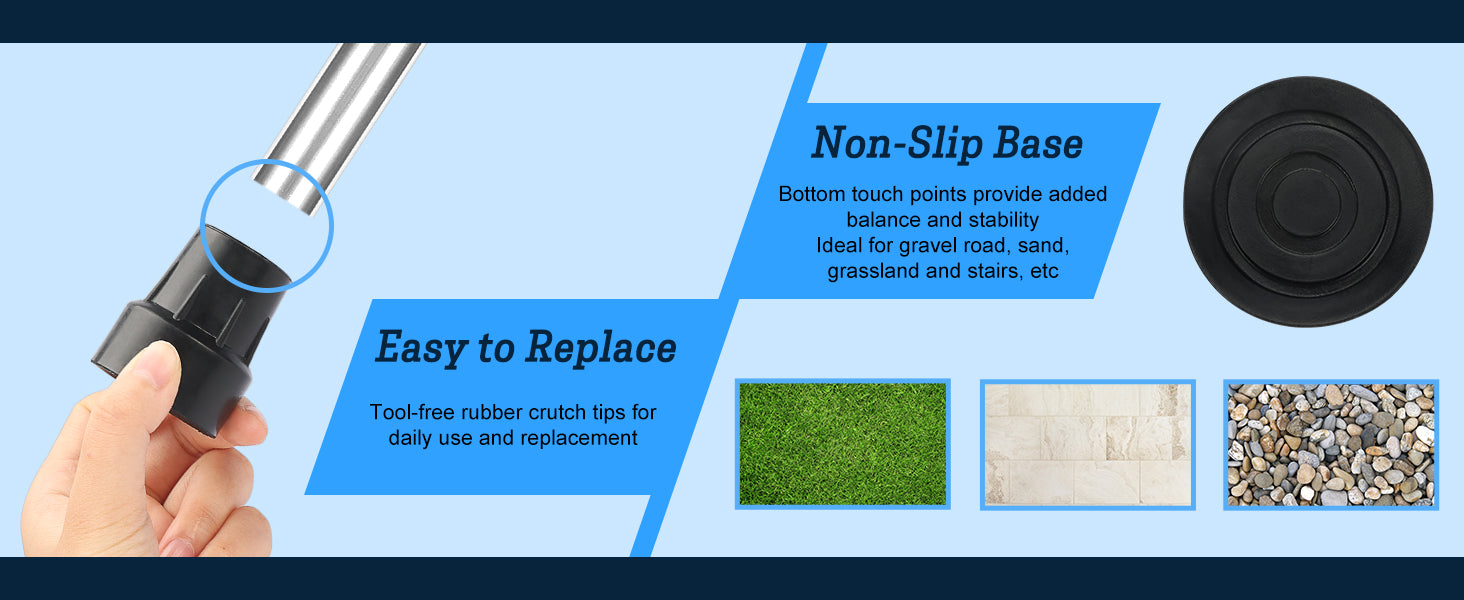 - Easy to Replace: tool-free rubber crutch tips for daily use and replacement; ensure safety by regularly replacing worn parts; great gift for the elderly or injured