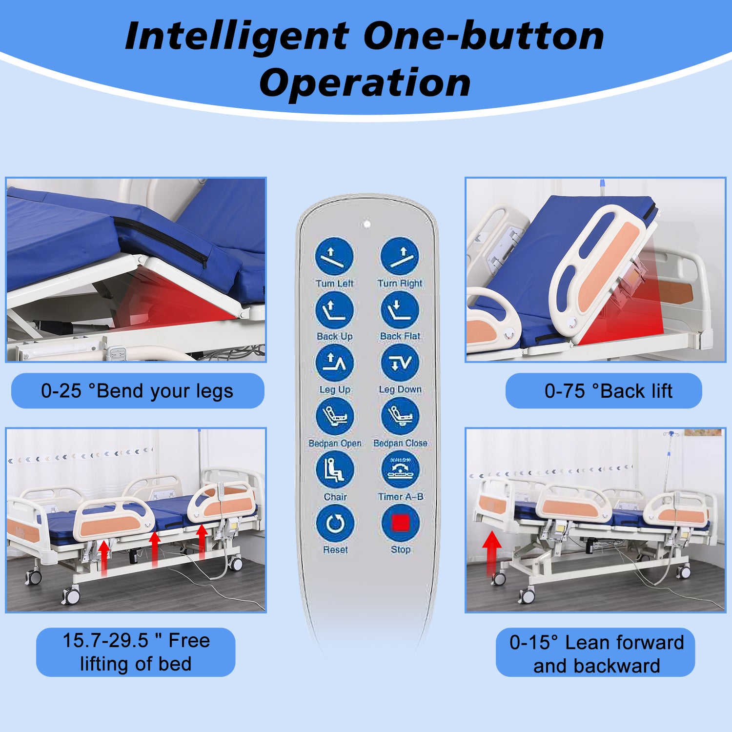 5-Function Remote Control Electric Hospital Bed (Mattress Included)