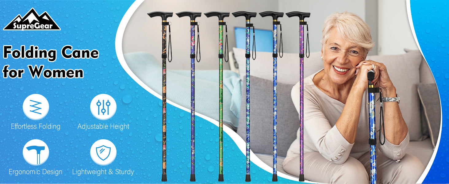 - Effortless Folding: SupreGear Folding Cane seamlessly folds into 4 compact sections, measuring 10 inches (26 cm), for convenient storage and hassle-free travel; it unfolds securely, ensuring continued safe use; this feature is especially beneficial for the elderly, disabled, injured individuals, men, or women, both indoors and outdoors