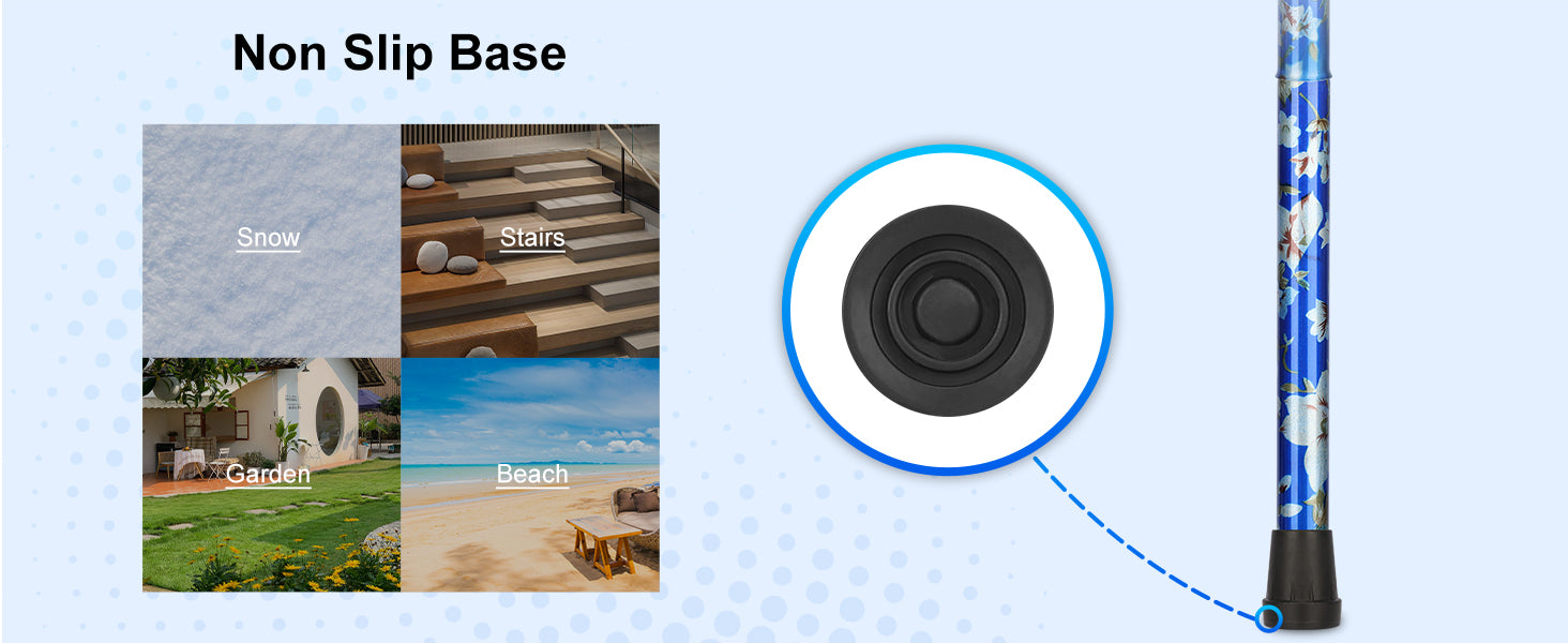 - Secure and Stable: the cane's tip is composed of robust TPR anti-slip material, ensuring exceptional traction and stability; the tip can be easily replaced with other types to fulfill diverse requirements