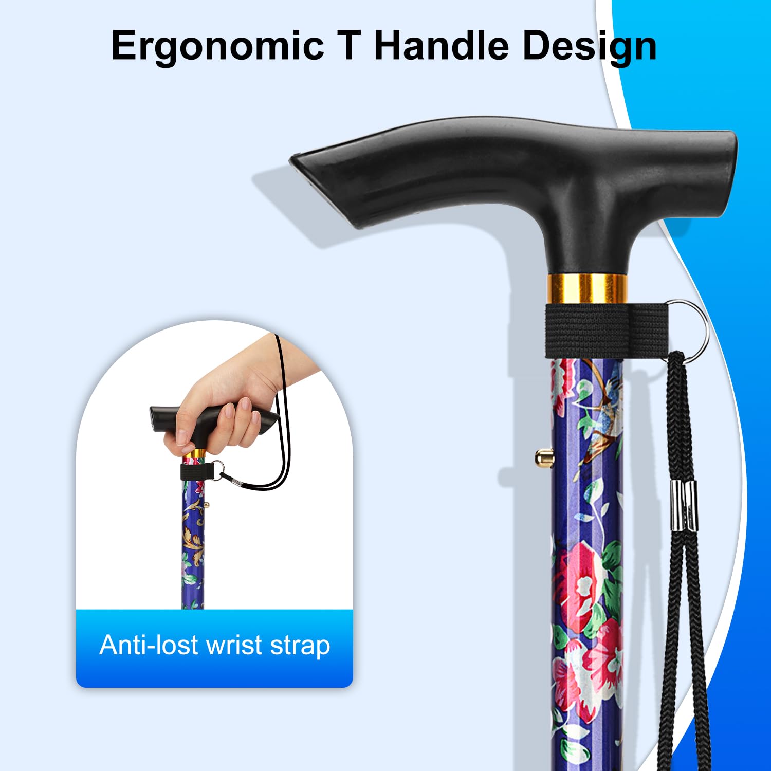 - Lightweight yet Sturdy: crafted with anodized aluminum, our cane combines durability with lightweight portability; weighing only 0.5 lb, it can support up to 198 lbs effortlessly