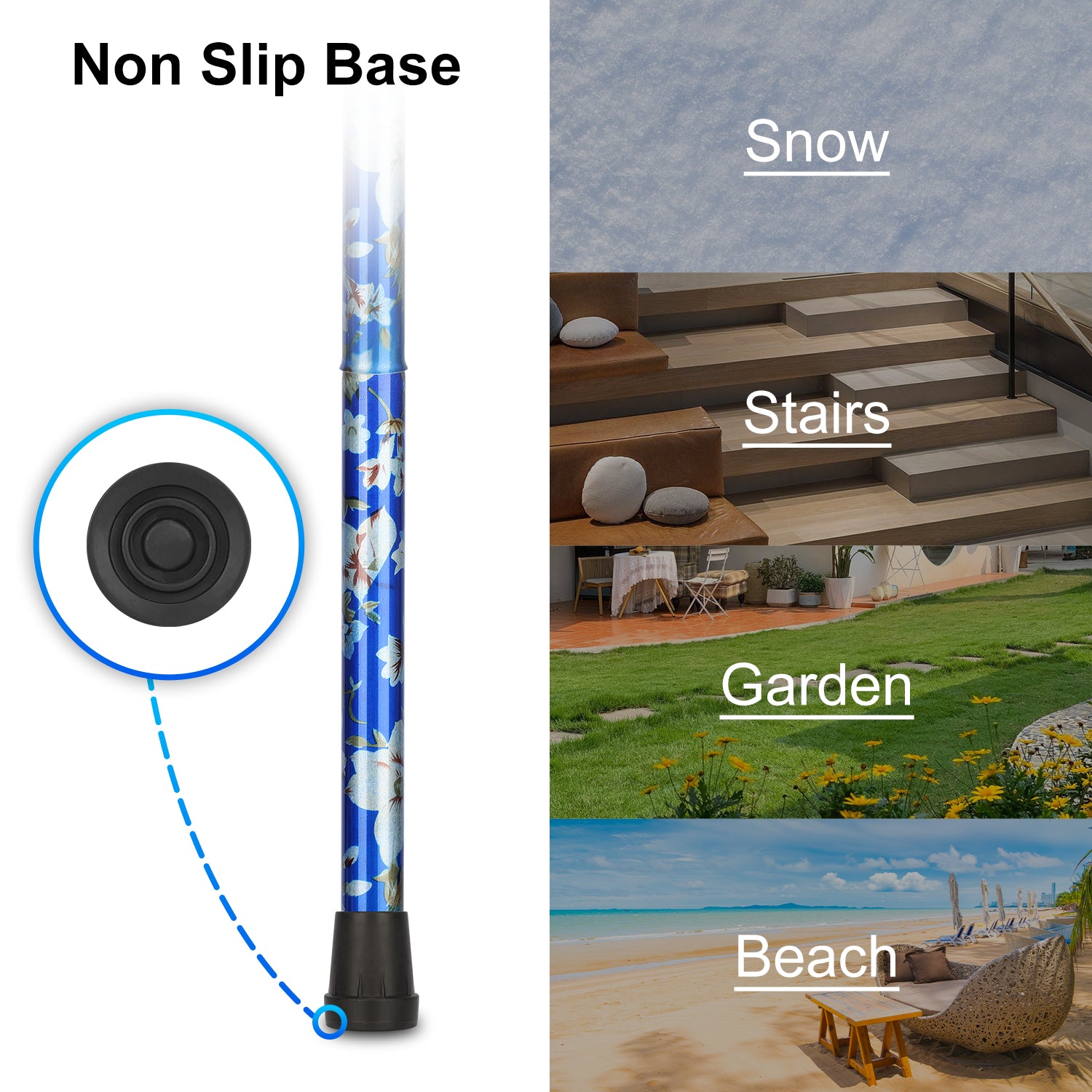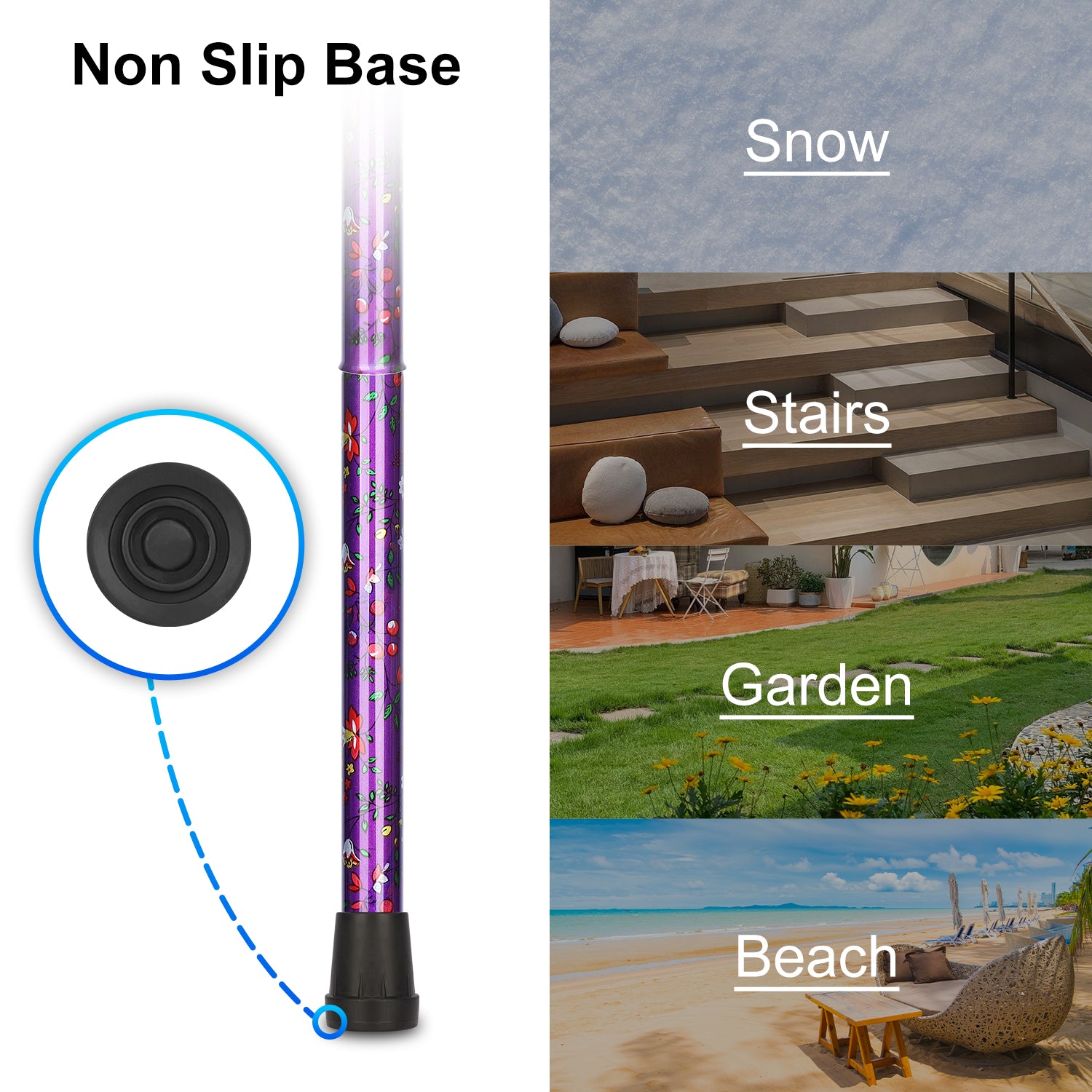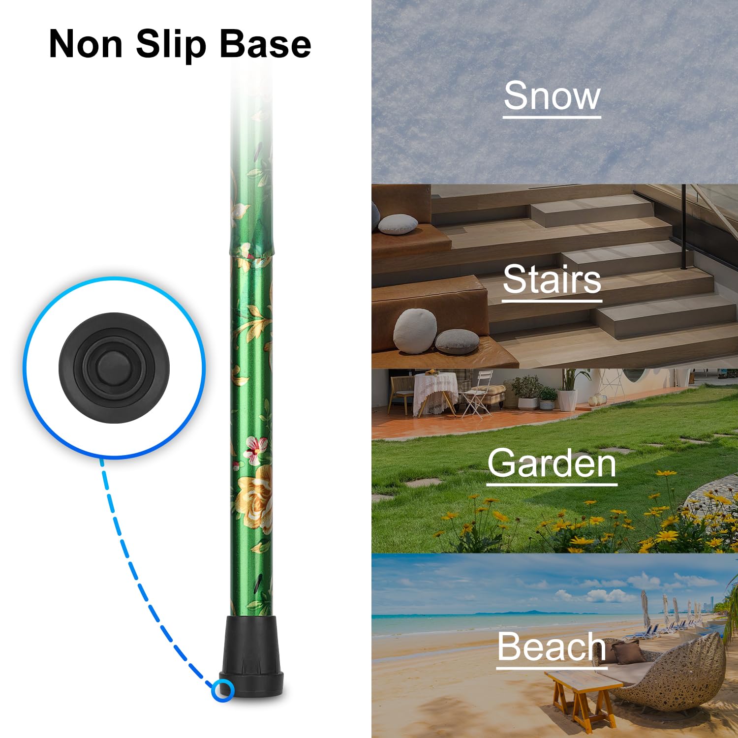 - Secure and Stable: the cane's tip is composed of robust TPR anti-slip material, ensuring exceptional traction and stability; the tip can be easily replaced with other types to fulfill diverse requirements