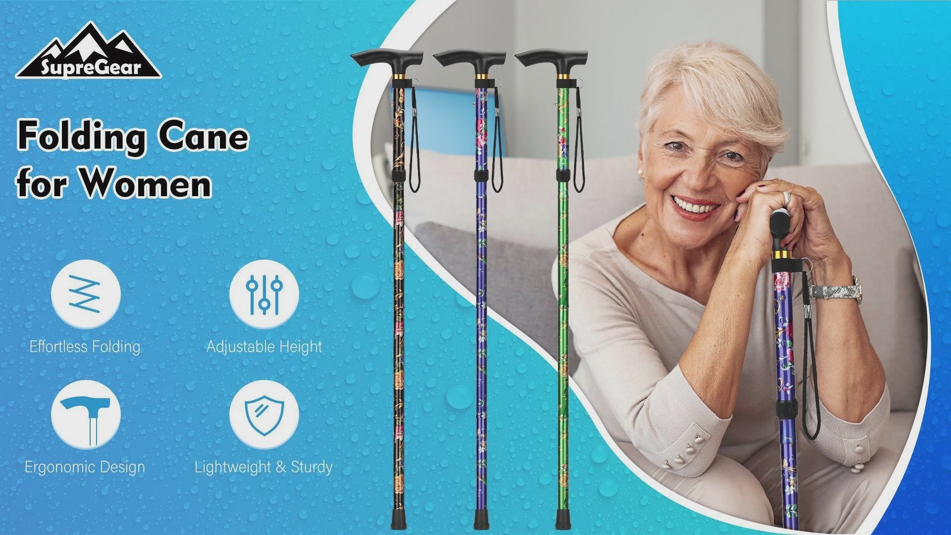 - Effortless Folding: SupreGear Folding Cane seamlessly folds into 4 compact sections, measuring 10 inches (26 cm), for convenient storage and hassle-free travel; it unfolds securely, ensuring continued safe use; this feature is especially beneficial for the elderly, disabled, injured individuals, men, or women, both indoors and outdoors