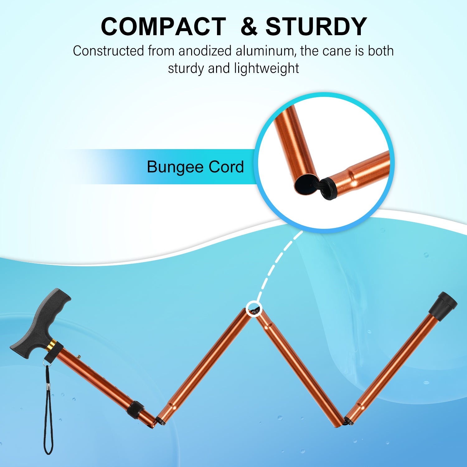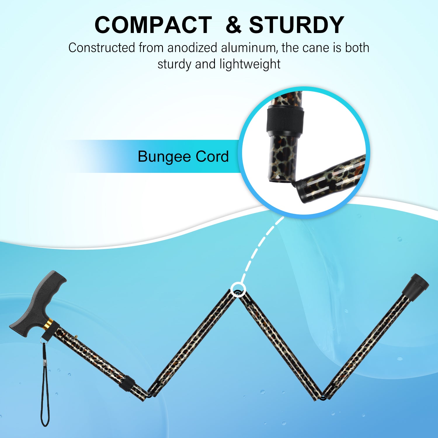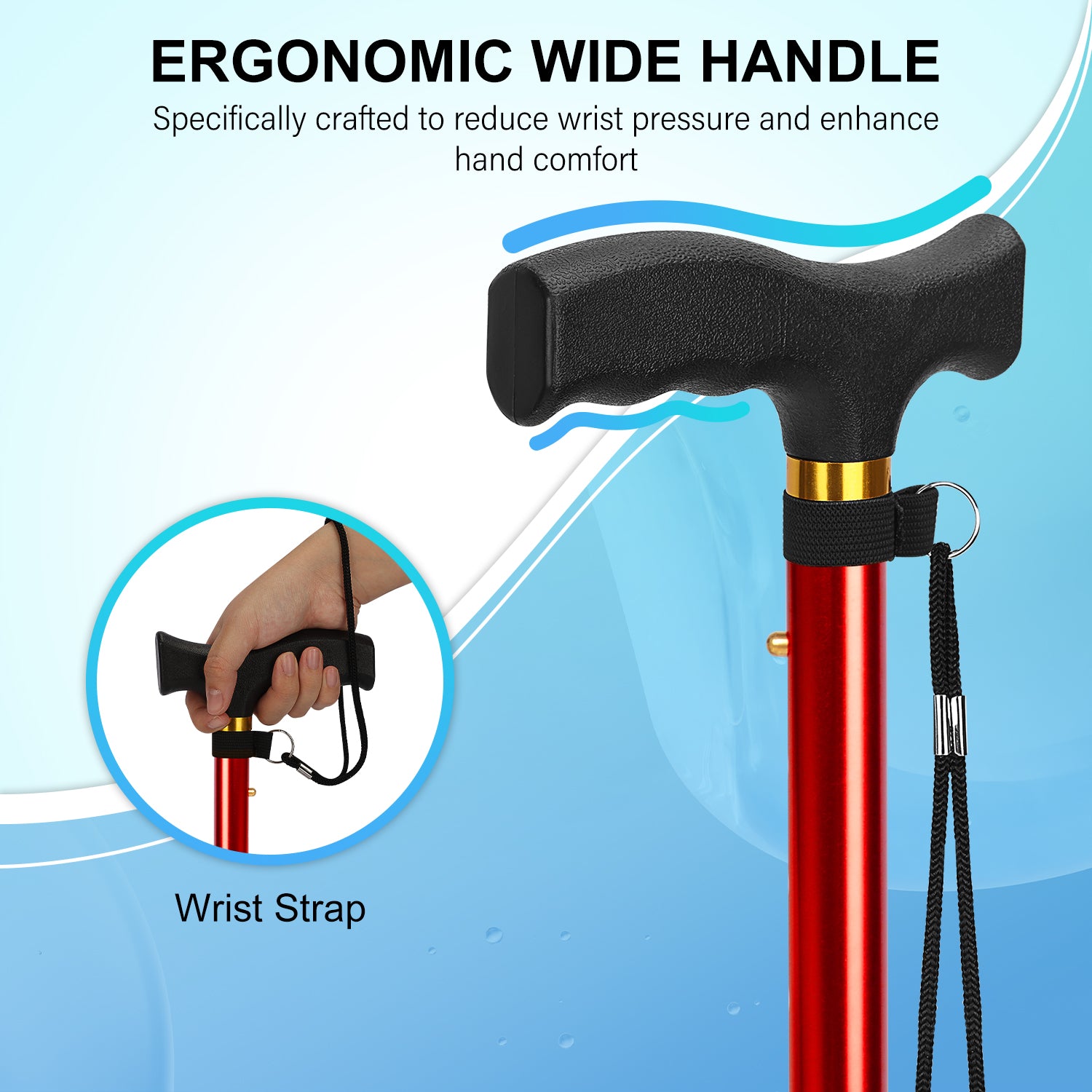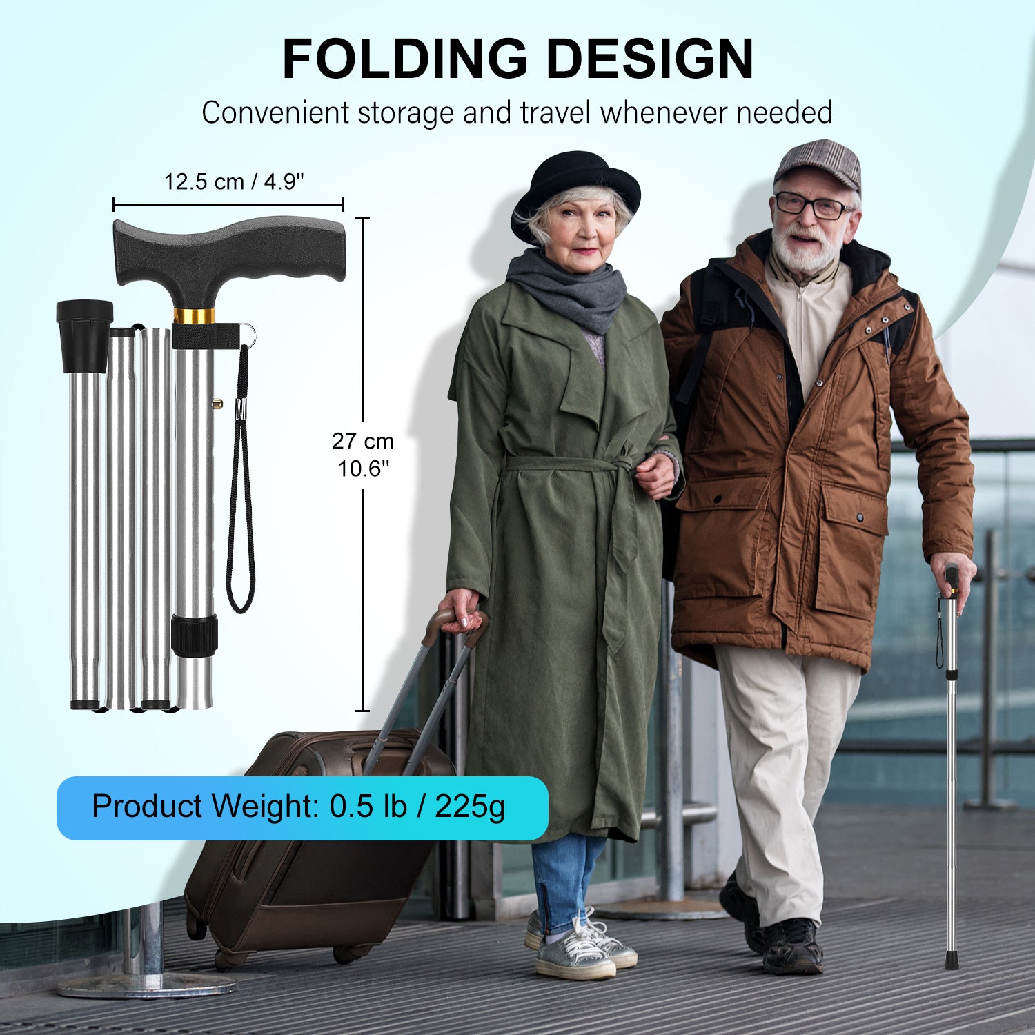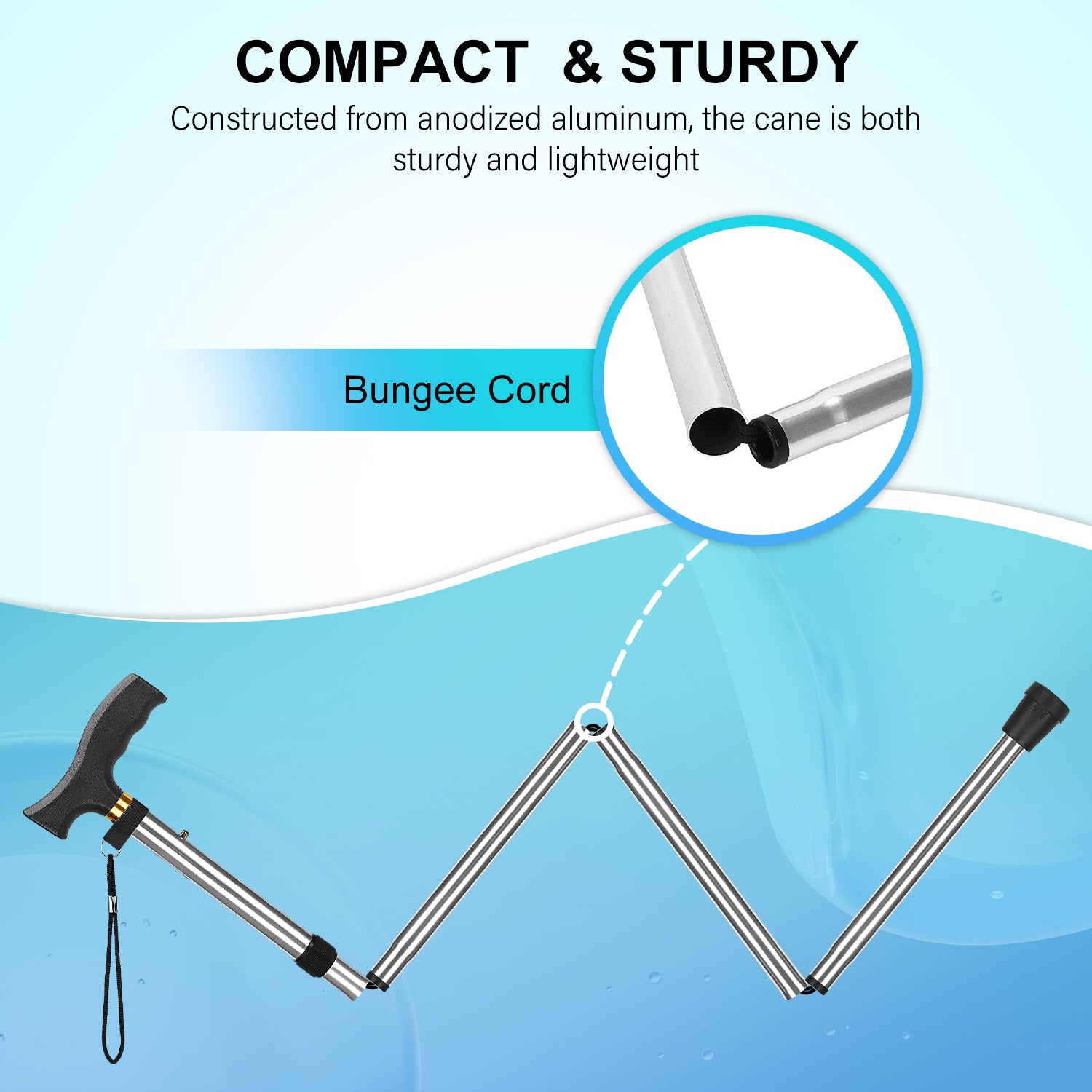 • Constructed from anodized aluminum, the cane is both sturdy and lightweight, making it easy to carry and use; despite its robust build, the cane itself weighs only 0.5 lb and can support up to 198 lbs