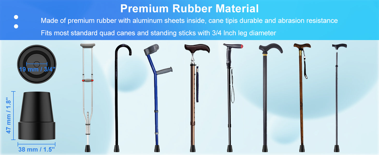 - Durable Build: constructed from premium rubber and reinforced with a metal insert, these cane tips are highly durable, abrasion-resistant, and can withstand low temperatures and deformation; high-quality materials ensure reliable traction and prevent slipping