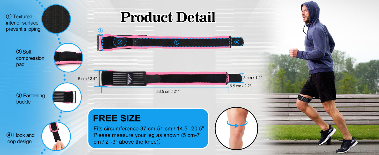 - Adjustable and 1 Size Fits Most: Easy off and on, the IT band wrap could be adjusted into the length and compression for best result; the ergonomic and flexible design allows this ITB strap fits either right or left leg, male or female