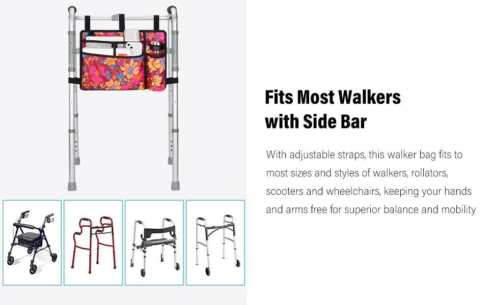 It fit on a wheel chair. With adjustable straps, the walker bag fits to most sizes and styles of wheelchairs.