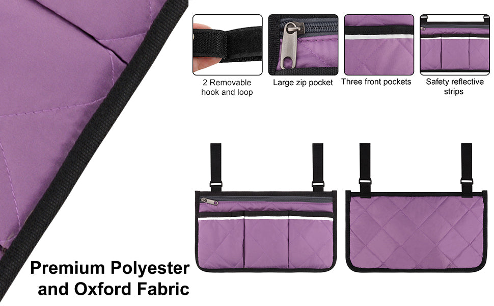 - 1 large zipper pocket and 3 front external pockets enable you getting quick access to frequently used items like reading glasses, drink, water bottle, snacks, remote control, wallet, books and medical supplies