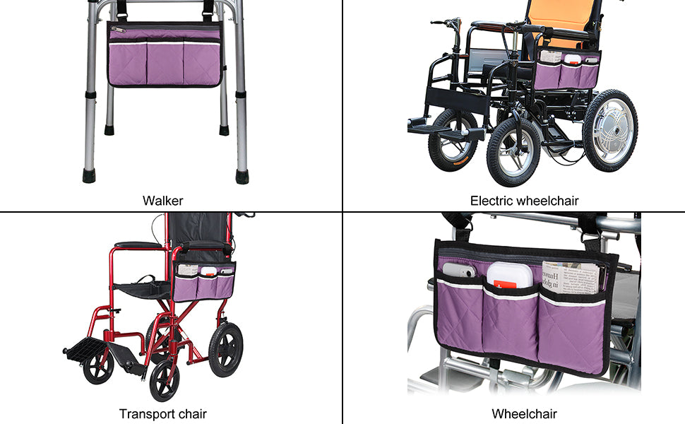 - Overall Dimension: 12.6 x 7 inches; great for organizing and holding your daily essential items; easily fits for most sizes and styles of wheelchairs, walkers, transport chairs, scooters, strollers, bedside rails with side bar