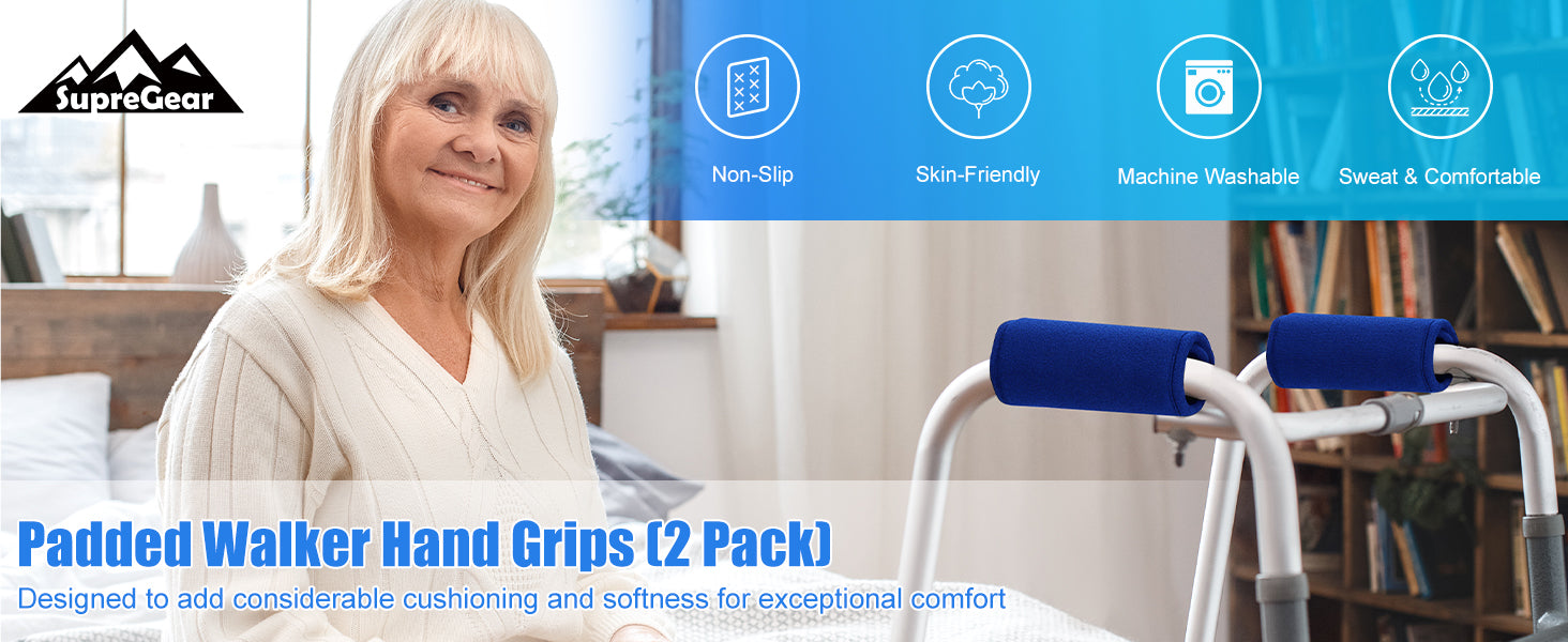- Our SupreGear Walker Grips are designed to provide marvelously comfort for hands by helping relieve stress and pain; It also eliminates the discomfort of the cold, hard bars of your walker by adding considerable cushioning and softness