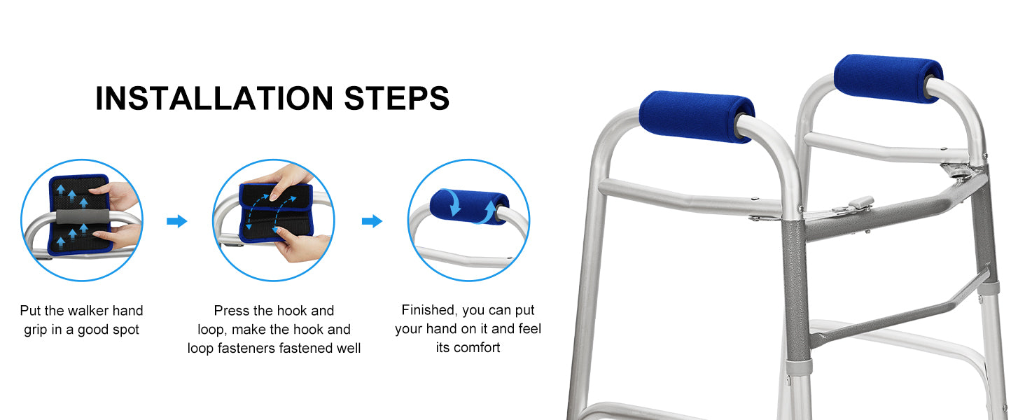 - Made of high quality, durable and soft material, the walker grips are lightweight and breathable; Underneath textured neoprene effectively prevents slipping and offers a more secure grip, keeping the padded grips stable