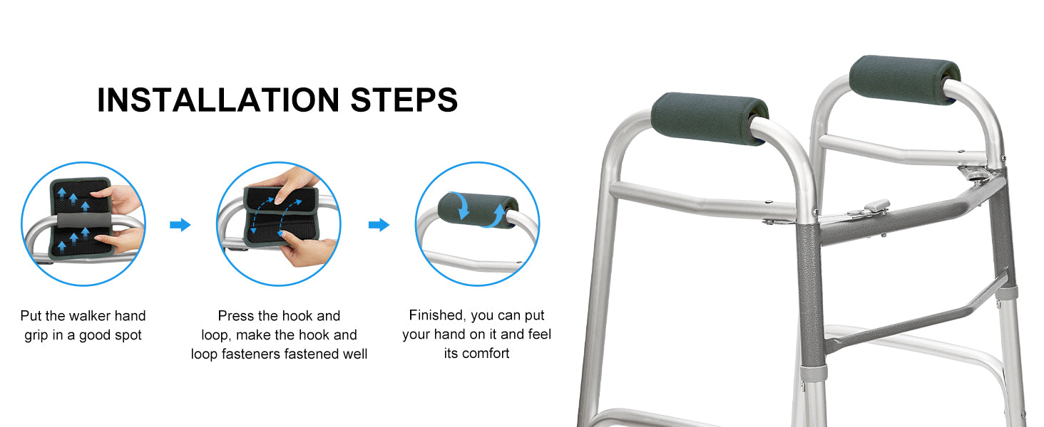 - Made of high quality, durable and soft material, the walker grips are lightweight and breathable; Underneath textured neoprene effectively prevents slipping and offers a more secure grip, keeping the padded grips stable