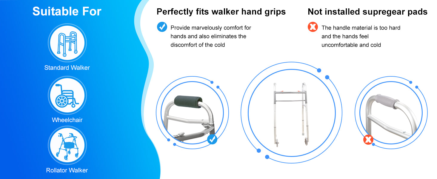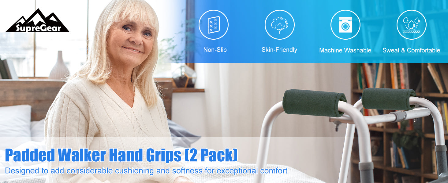 - Our SupreGear Walker Grips are designed to provide marvelously comfort for hands by helping relieve stress and pain; It also eliminates the discomfort of the cold, hard bars of your walker by adding considerable cushioning and softness