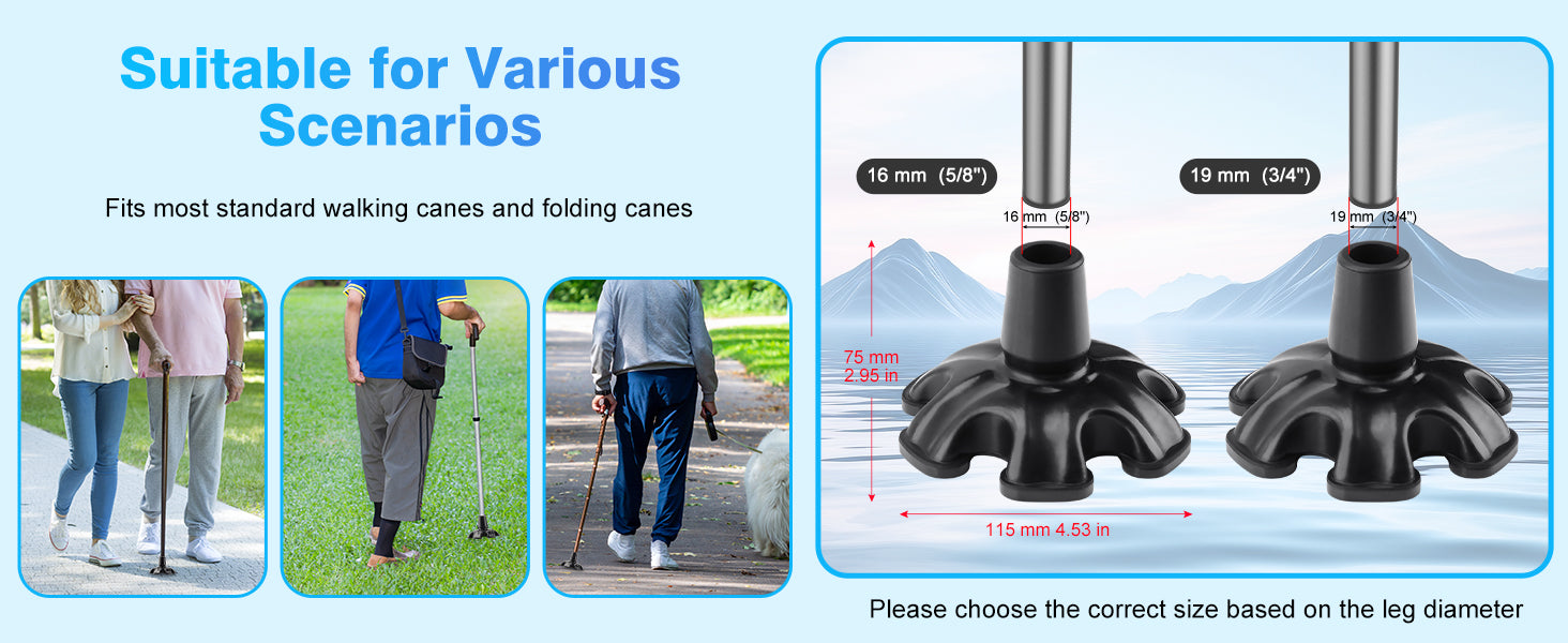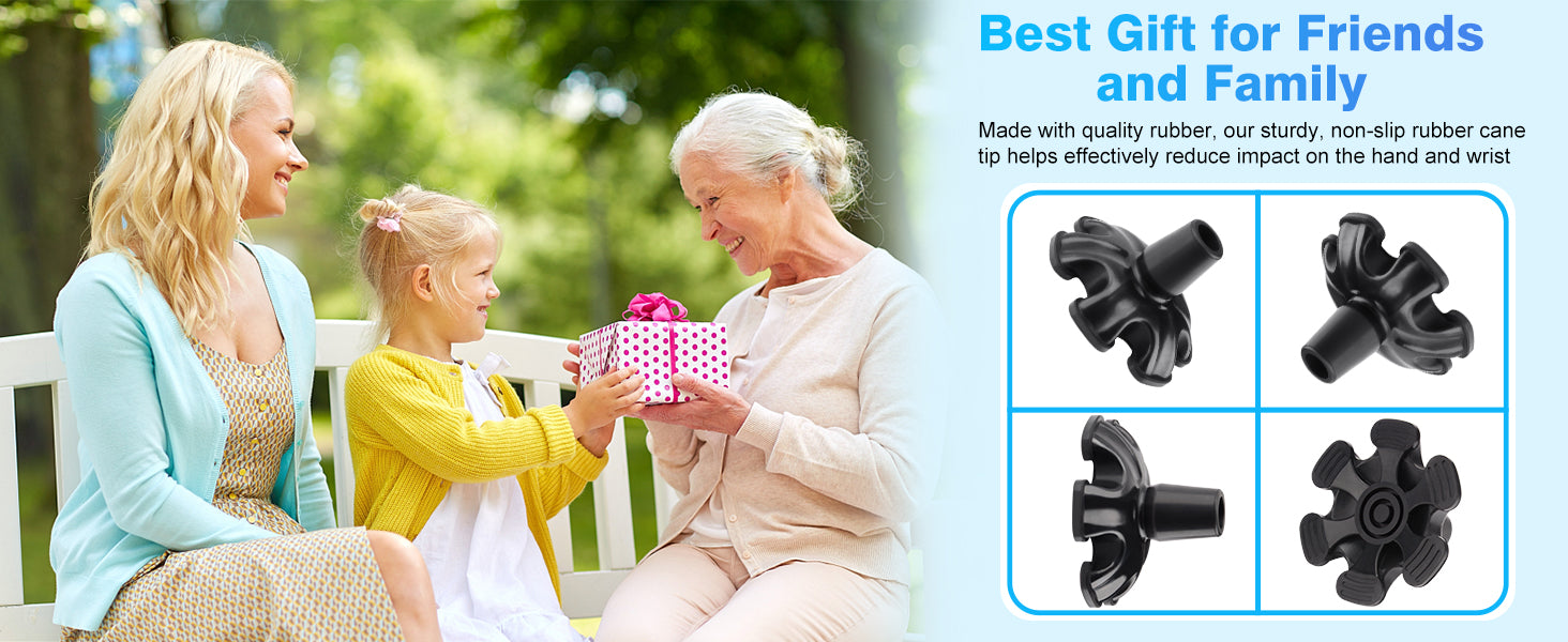 - Premium Material: made with quality rubber, our sturdy, non-slip heavy-duty rubber cane tip helps effectively reduce impact on the hand and wrist, provides greater traction on various terrains and prevents slippage
