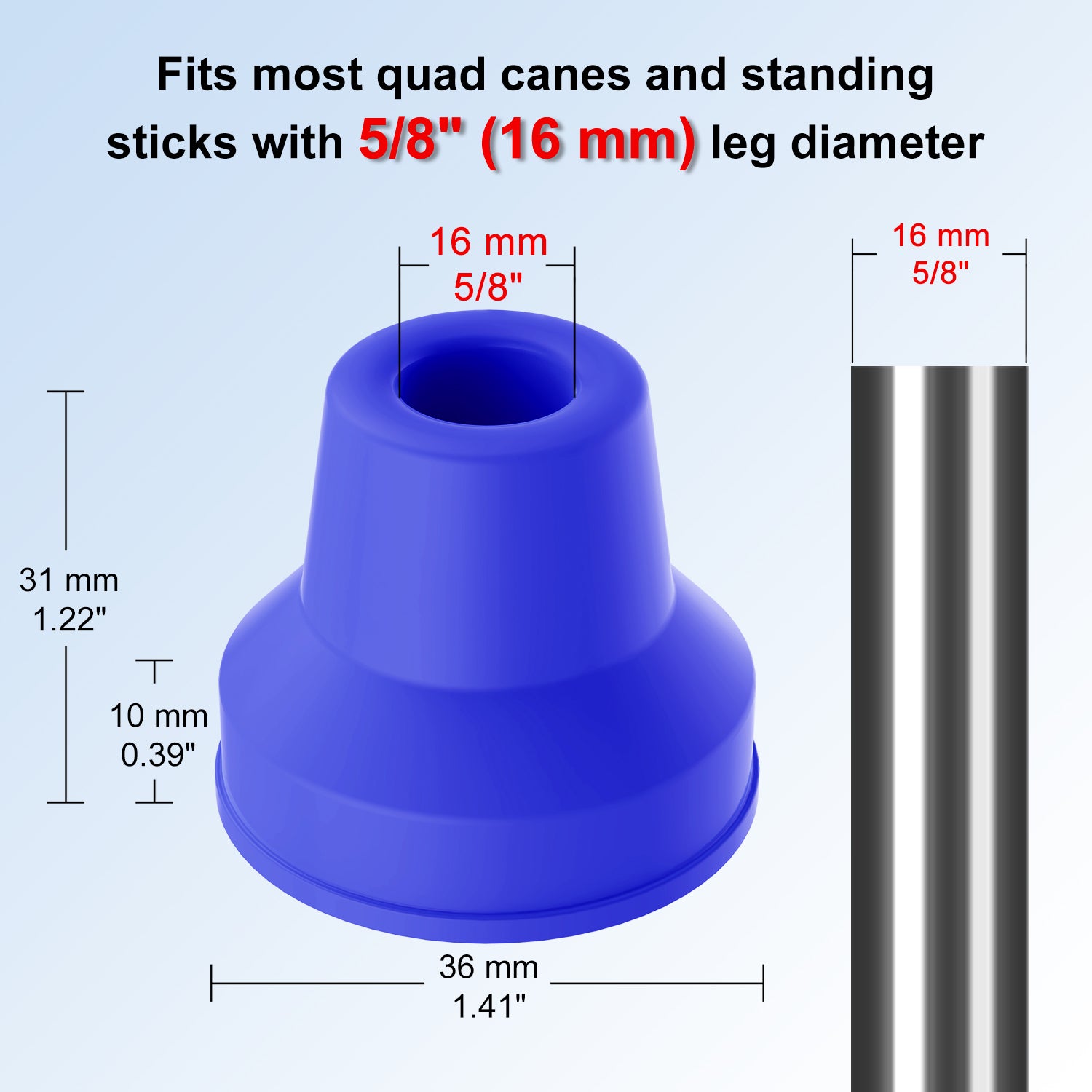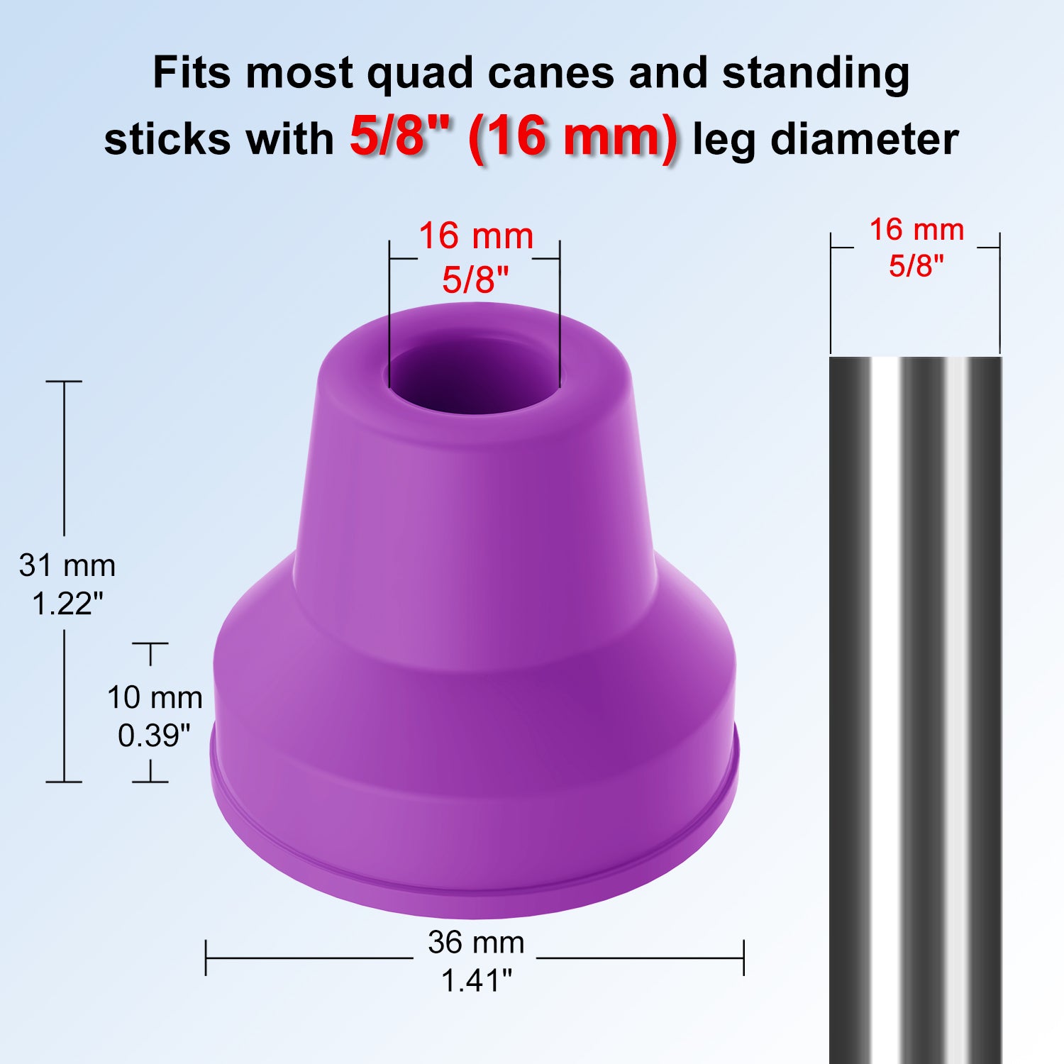 - Compatible with most quad canes and standing sticks with 1/2" or 5/8" leg diameters