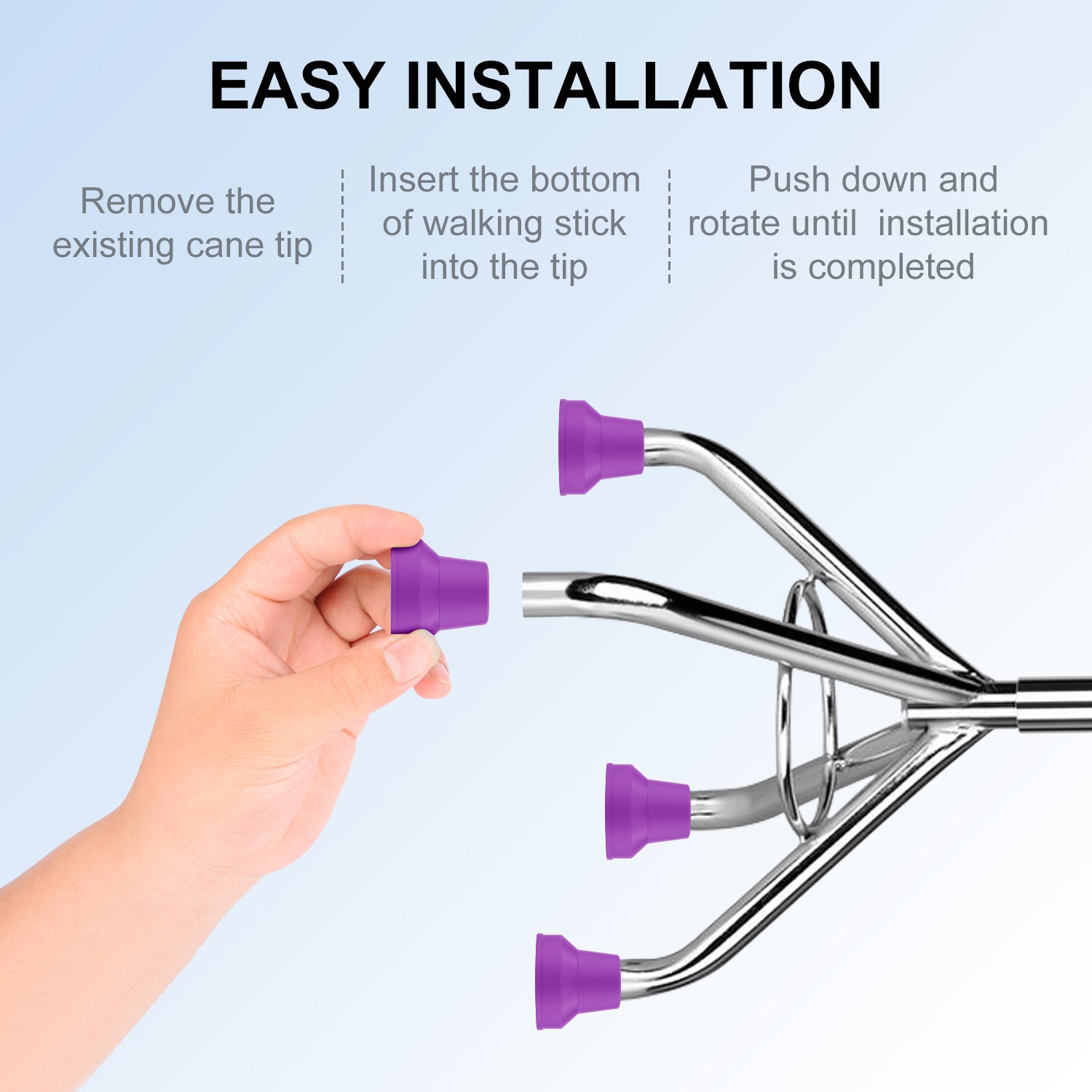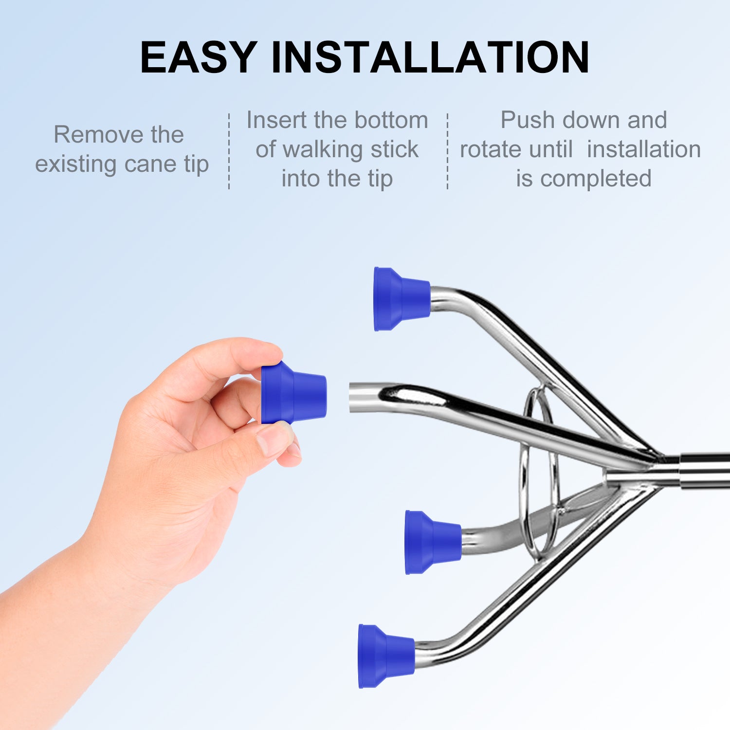 - Easy to use as a replacement for original or add-ons; simply remove the existing cane tip, insert the bottom of walking stick into the tip, push down and rotate until installation is completed