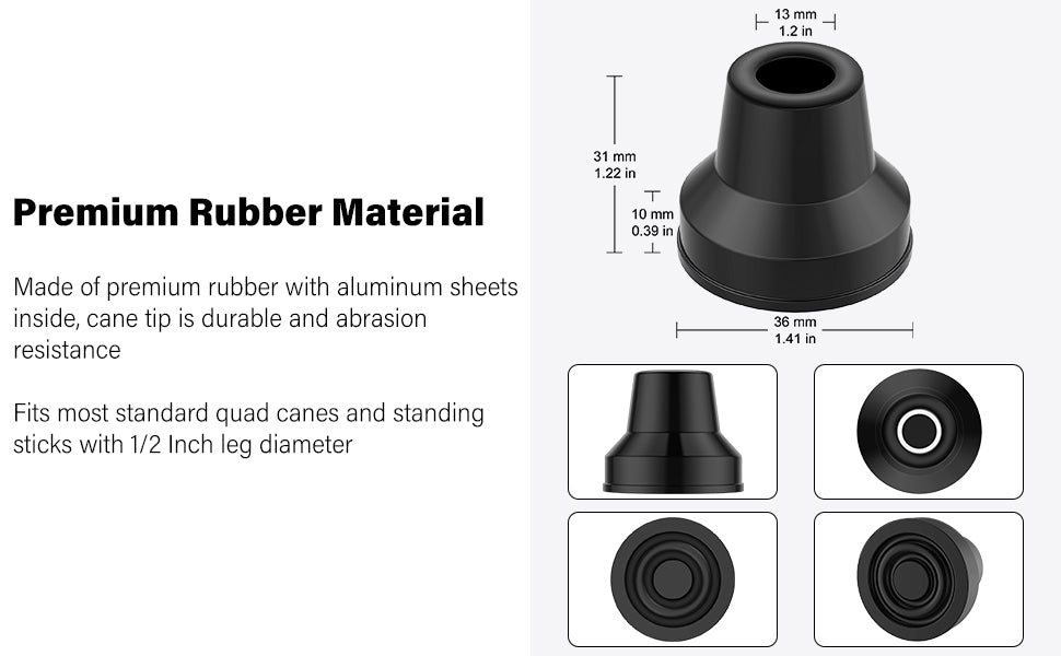 - Made of premium rubber with aluminum sheets inside, our cane tip is durable and abrasion resistance, providing greater traction and preventing slippage