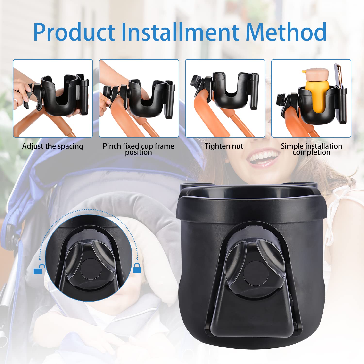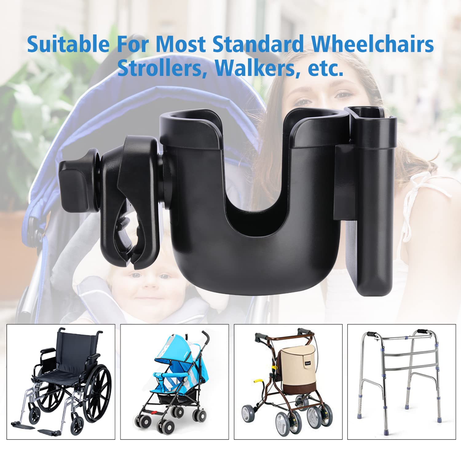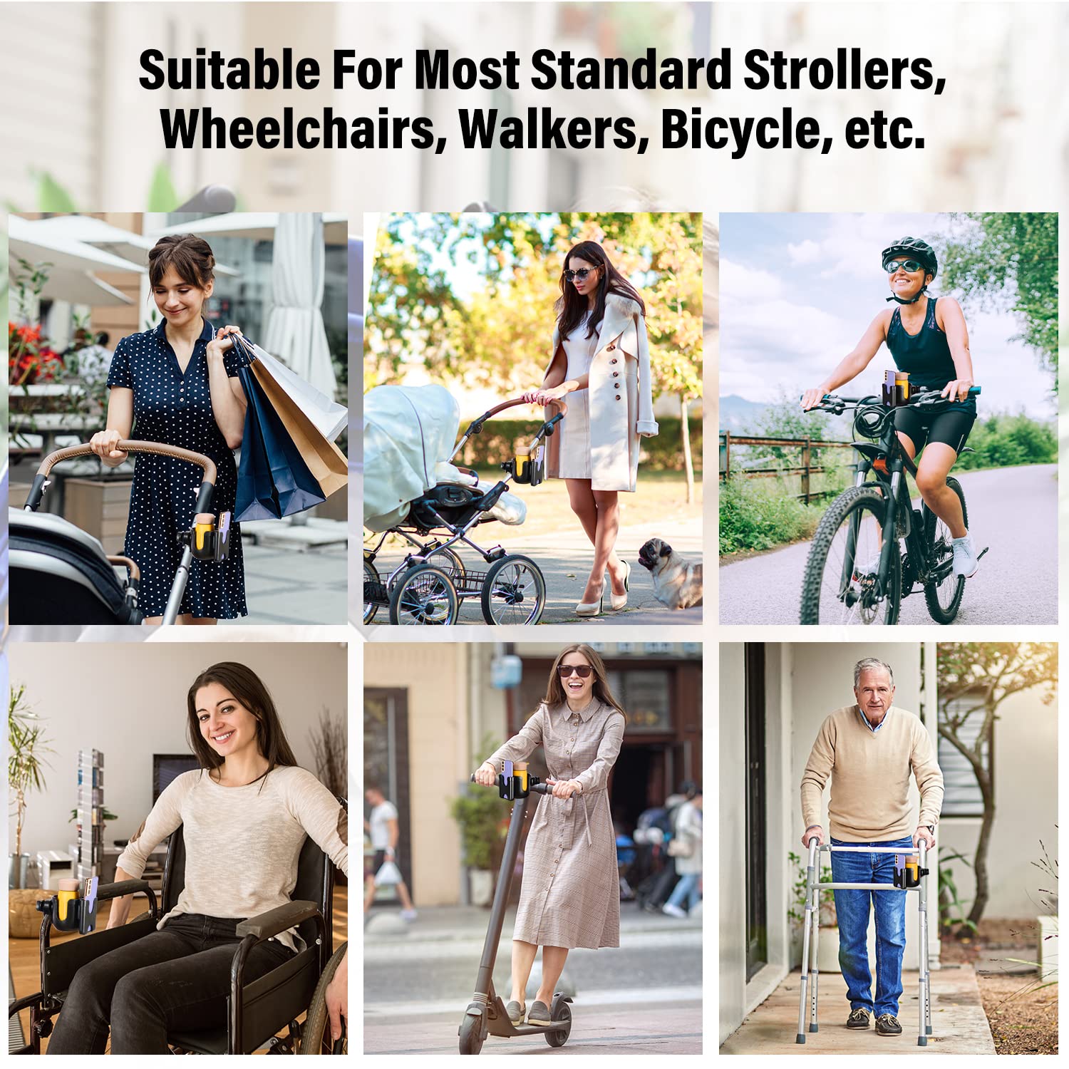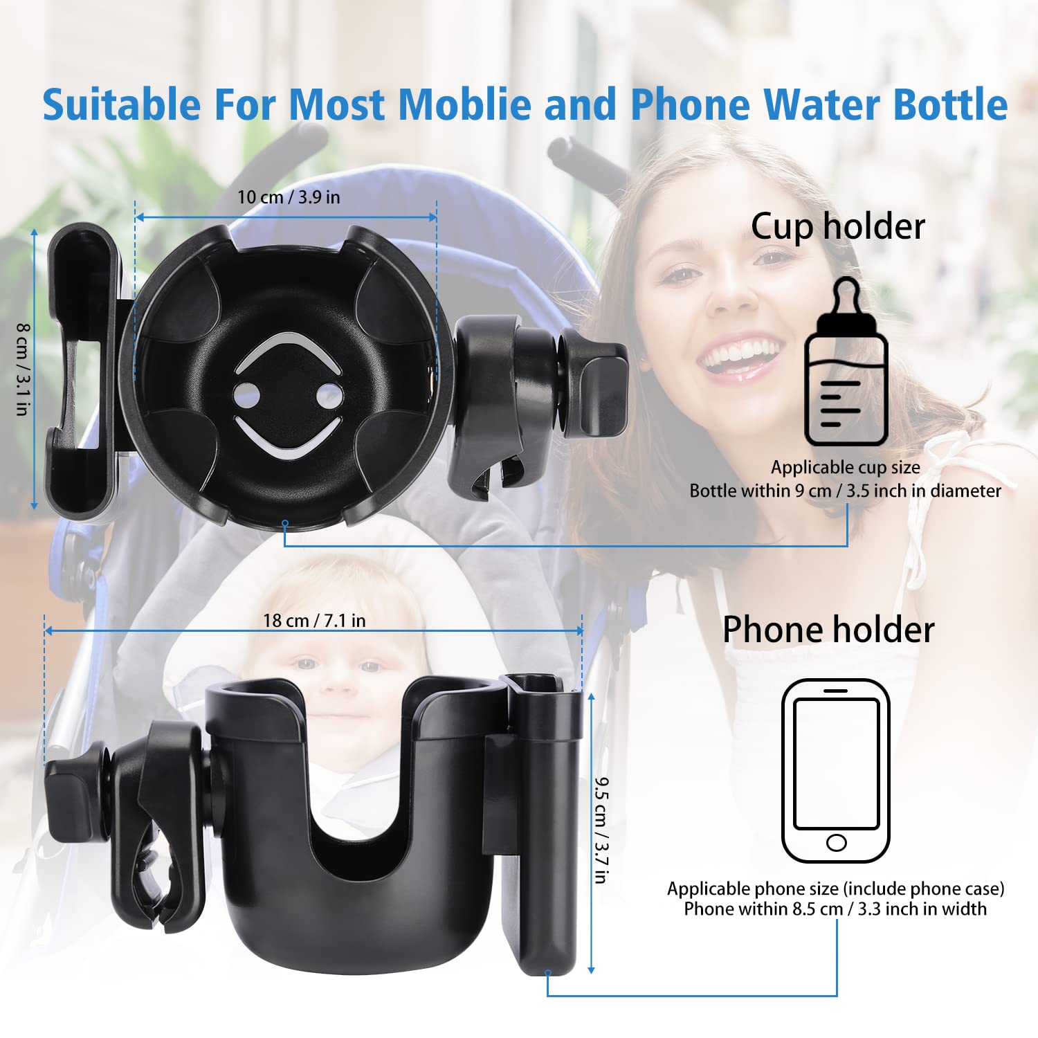 - SupreGear 2-in-1 cup and phone holder universally fits with most strollers, walkers, bikes, bed rails, scooters, and more