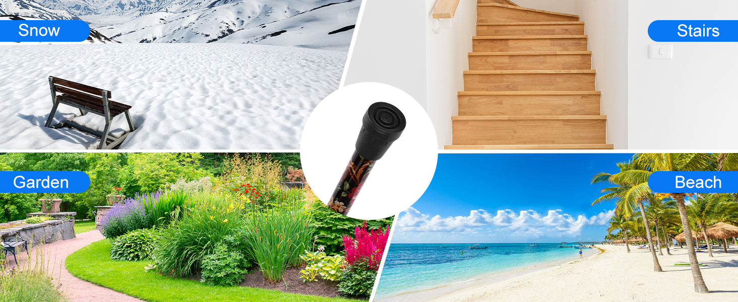• The tip is made of sturdy TPR anti-slip material, providing great traction and stability; it could be replaced to other types of cane tips to meet various requirements