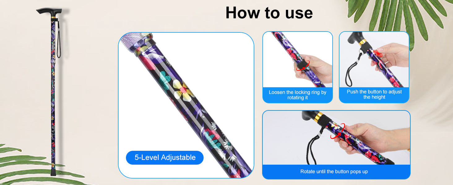 Thank you for your interest in our 5-Level Adjustable Height Walking Stick Folding Cane.