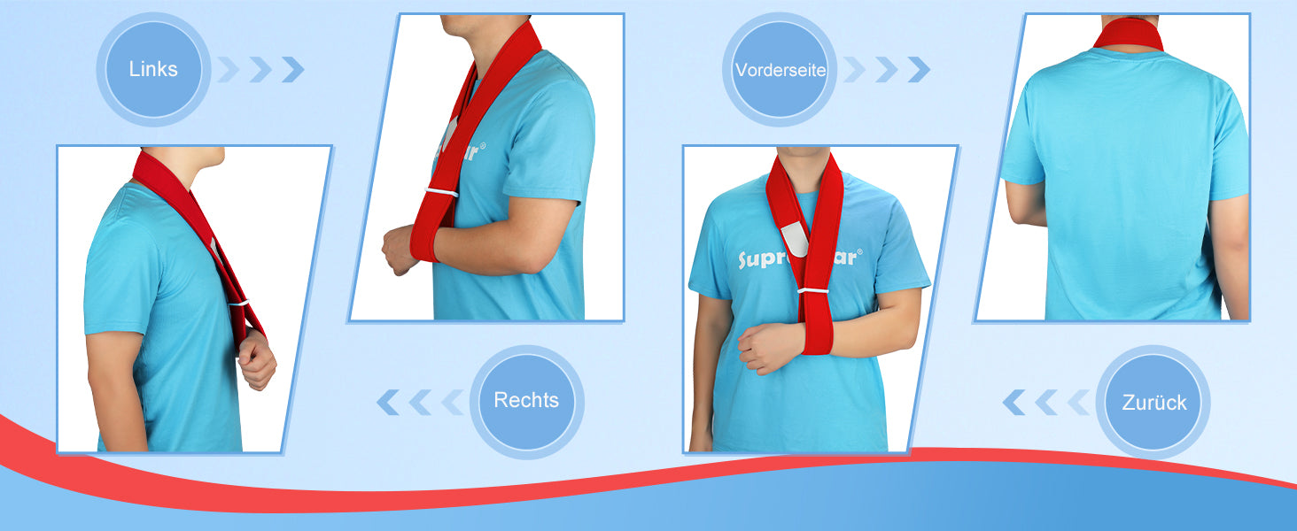 Here is the video which introducing how to wear this arm sling. Please click it to see if is it helpful to you.