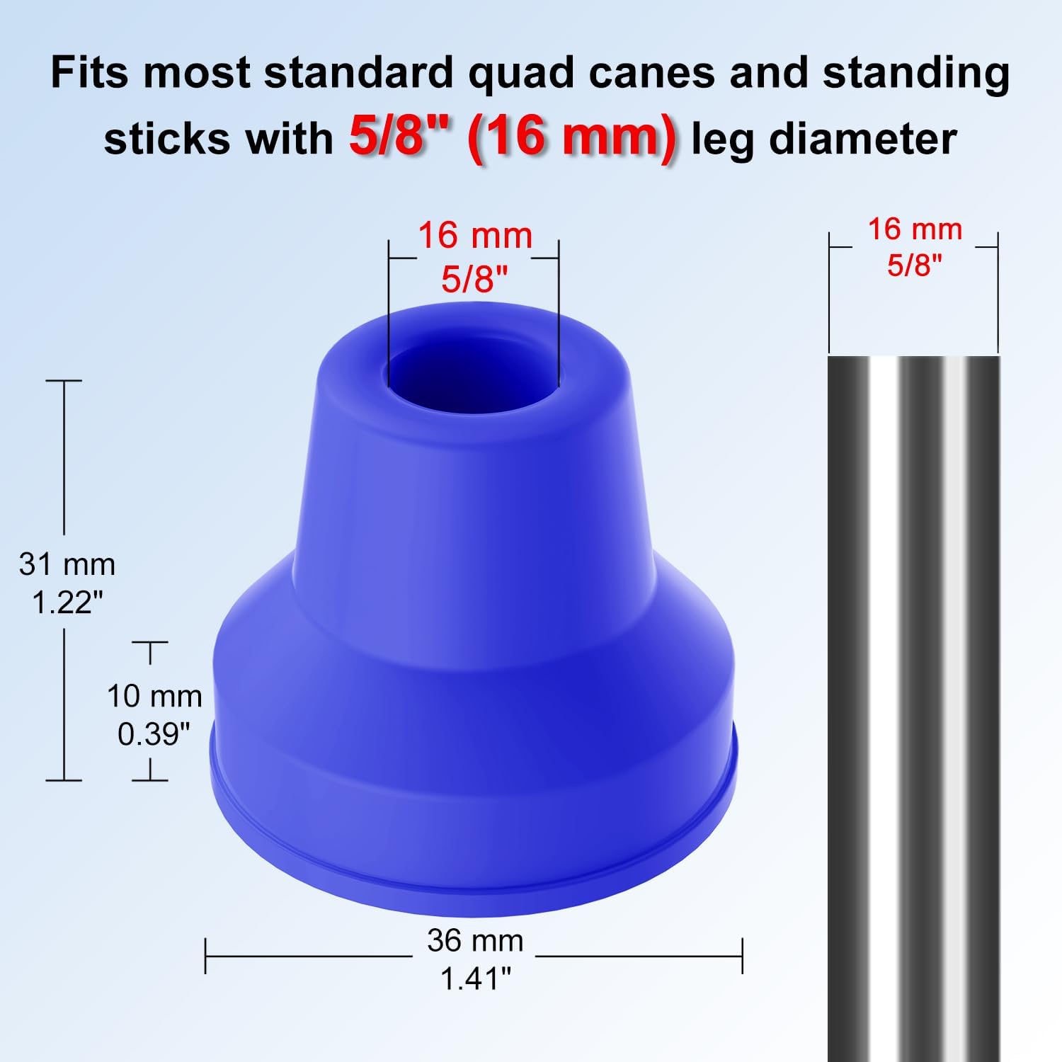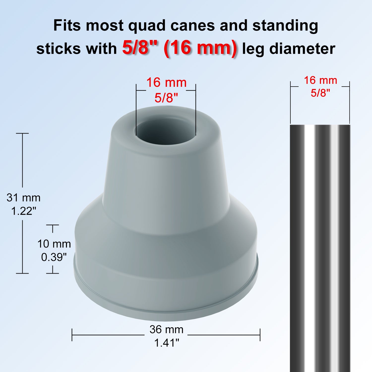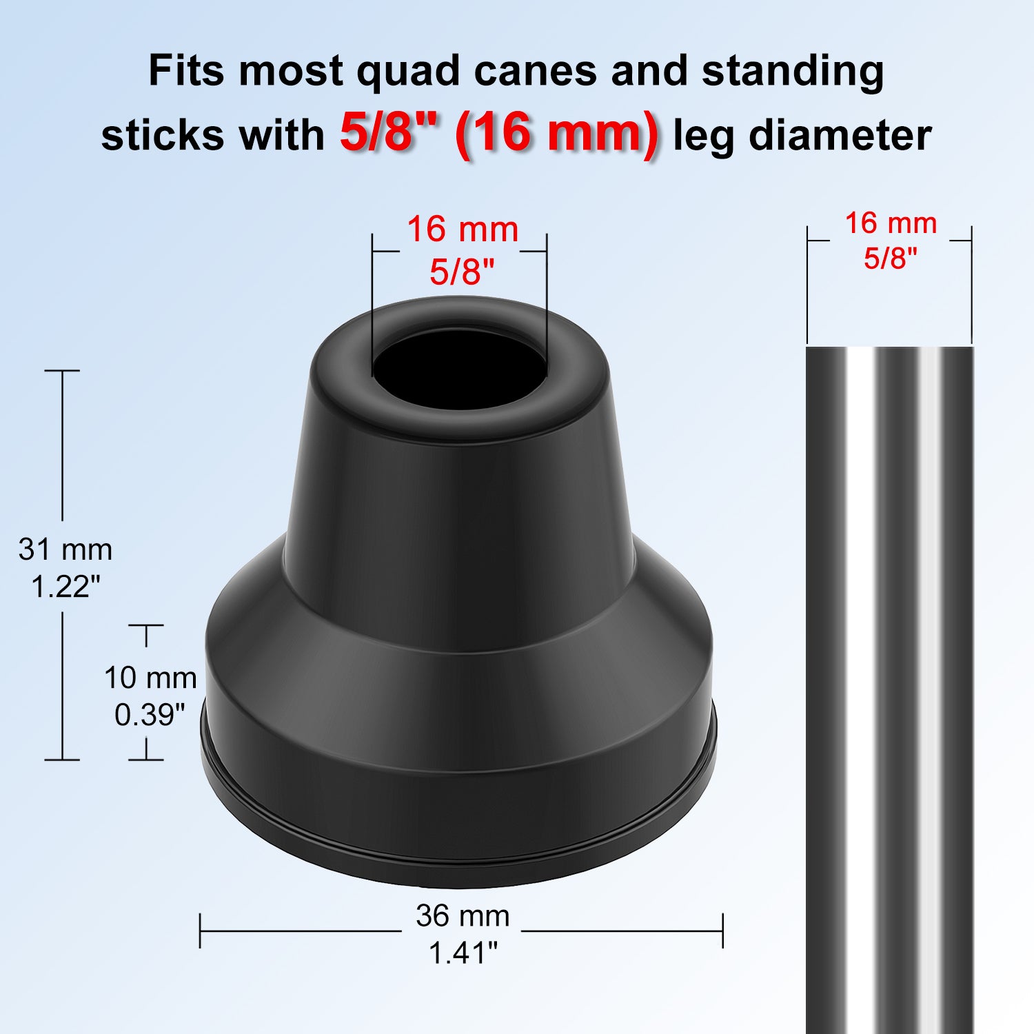 - Comes with 8pcs for replacement, black and grey available; fits most standard quad canes and standing sticks with 1/2 Inch or 5/8 Inch leg diameter