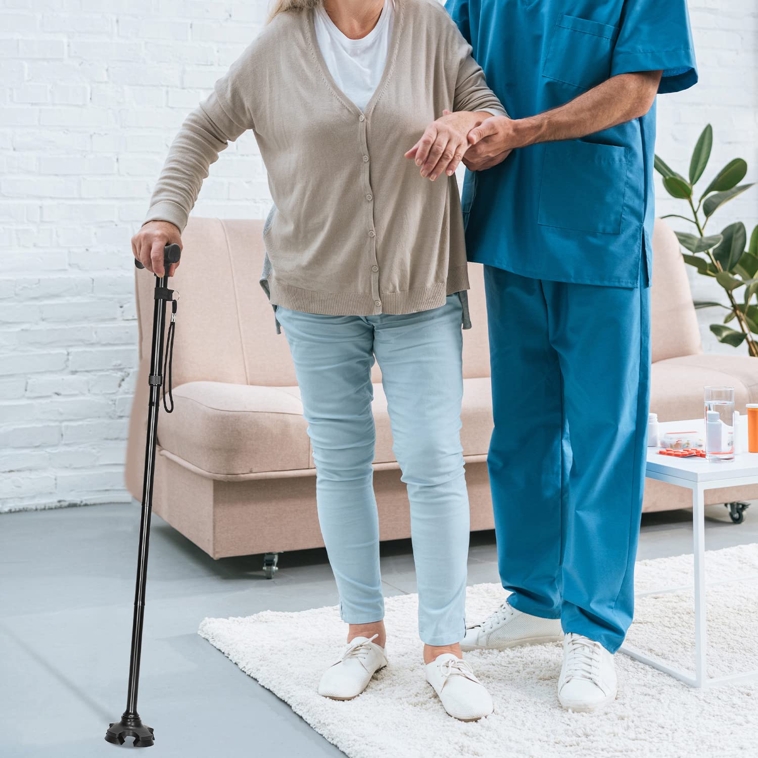 My hubby is Mr. Healthy but last year he did something that set his back off. He was bent over and could barely hobble to get in the car to to the Dr. Hopefully that won't happen again but I picked up this cane just in case. He can lean on it to get support. The cane is foldable and adjustable making it very portable..The bottom of it has a little structure to help stabilize the cane. My neighbor is having back surgery soon so I will lend it to her. And I will have it in case of another back emergency.