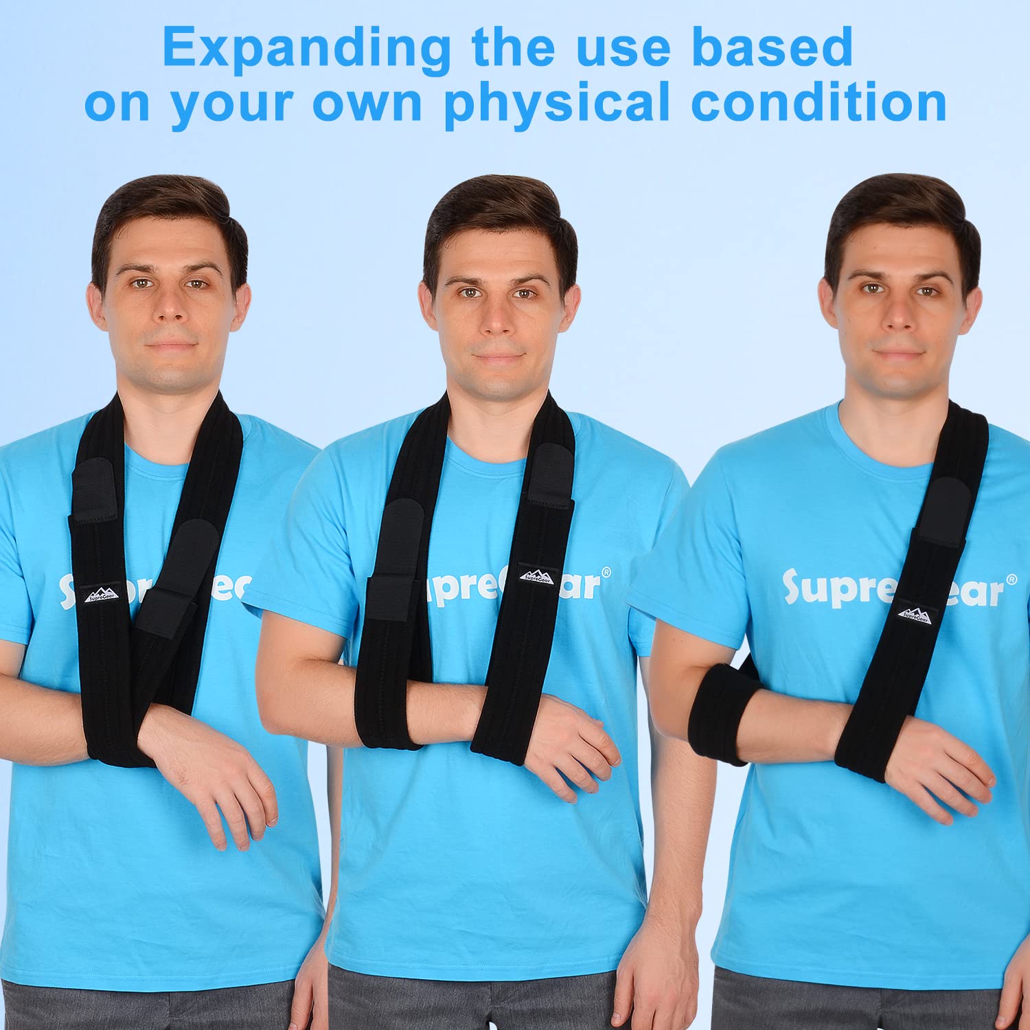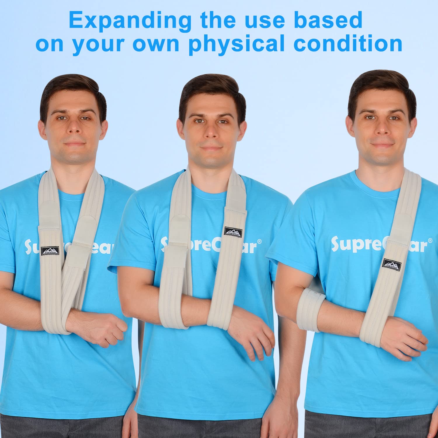 - Using a proper arm sling is crucial for securing the arm and avoiding further harm; supregear arm sling is perfect for post-operative recuperation, fractures, dislocations, rotator cuff repairs, and other arm/hand injuries; fits either right or left arm, male or female