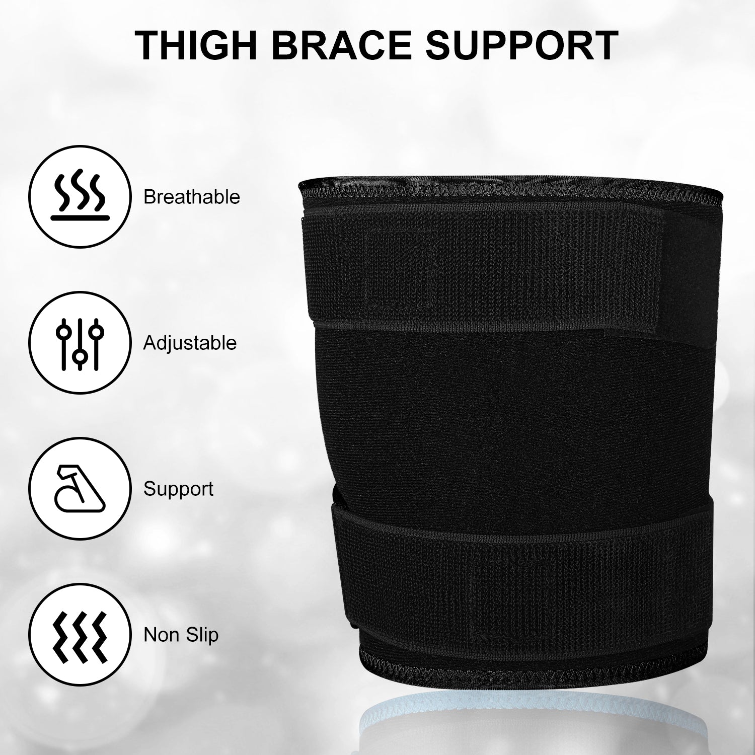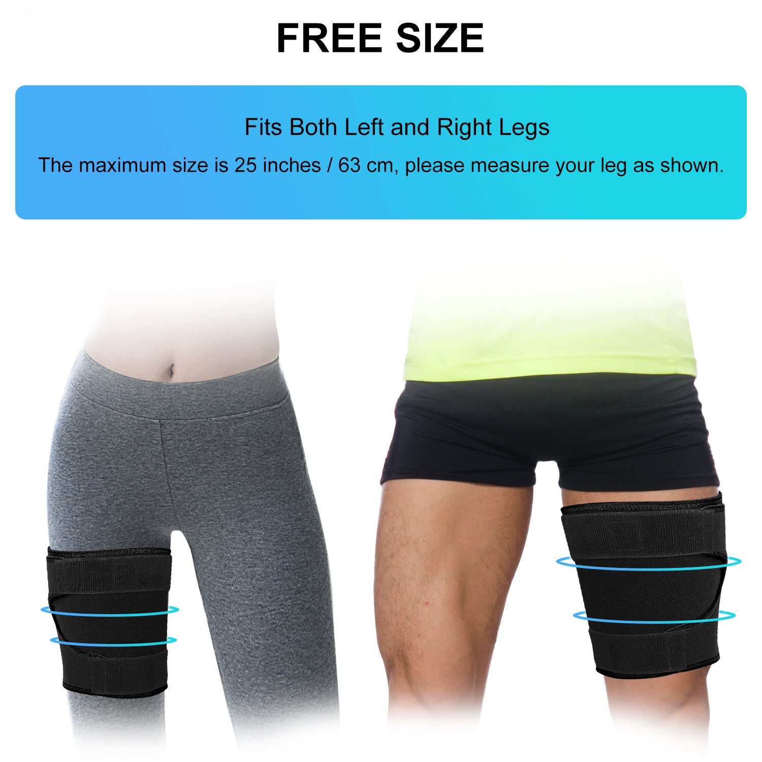 - Fully Adjustable: featuring 2 premium elastic straps with fastening closures, you can easily adjust the length and compression to accommodate thighs up to 25 inch in circumference, ensuring the best possible fit; ergonomic and flexible design allows the thigh wrap to be used on either the right or left leg, for both males and females, with easy on and off capabilities