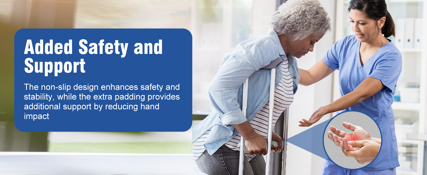 - Added Safety and Support: the non-slip design enhances safety and stability, while the extra padding provides additional support by reducing hand impact; each package includes 2 crutch handgrips that measure 3.9" L x 1.5" W with a 4.7" circumference