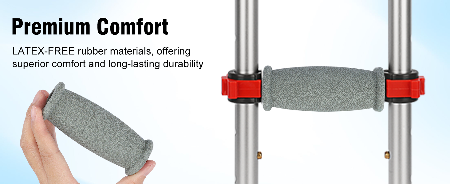 - Premium Comfort: our crutch handgrips are crafted from premium, LATEX-FREE rubber materials, offering superior comfort and long-lasting durability