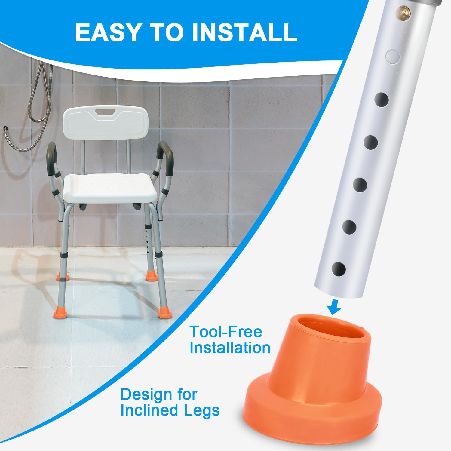 - Easy Installation: These rubber feet pads are incredibly easy to install, requiring no tools; simply slide them onto the legs of your bath chair for immediate improvement in stability and safety