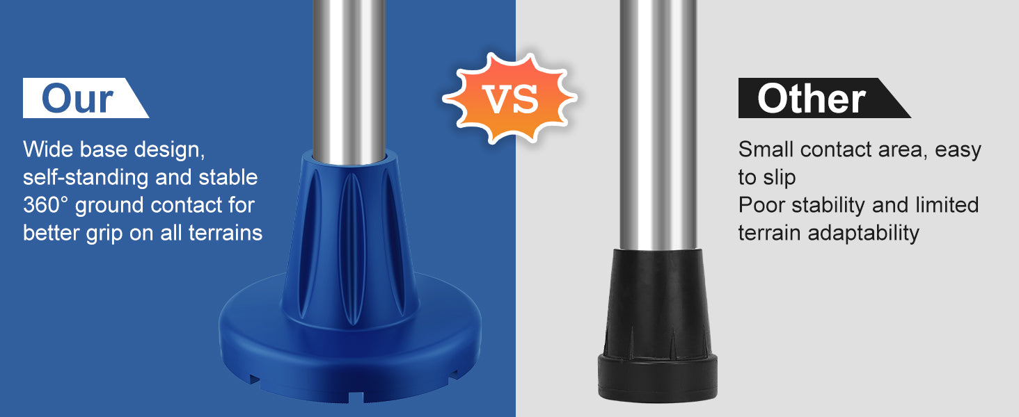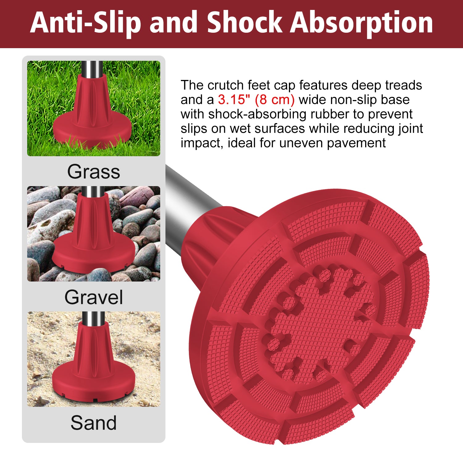 • Anti-Slip and Shock Absorption: The crutch feet cap features deep treads and a 3.15" (8 cm) wide non-slip base with shock-absorbing rubber to prevent slips on wet surfaces while reducing joint impact, ideal for uneven pavement