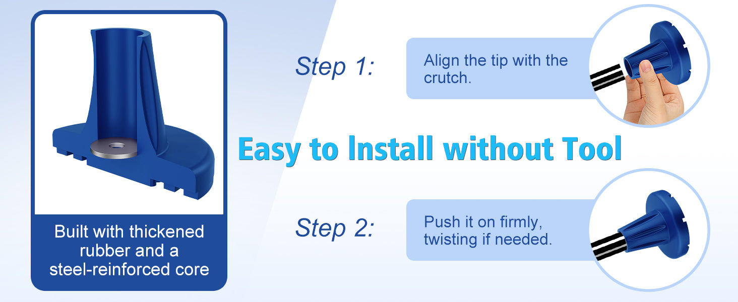 • Effortless Installation: No tools required — Simply align the crutch base with your shaft and secure with a push-twist motion; compatible with most 7/8" (22 mm) mobility aids