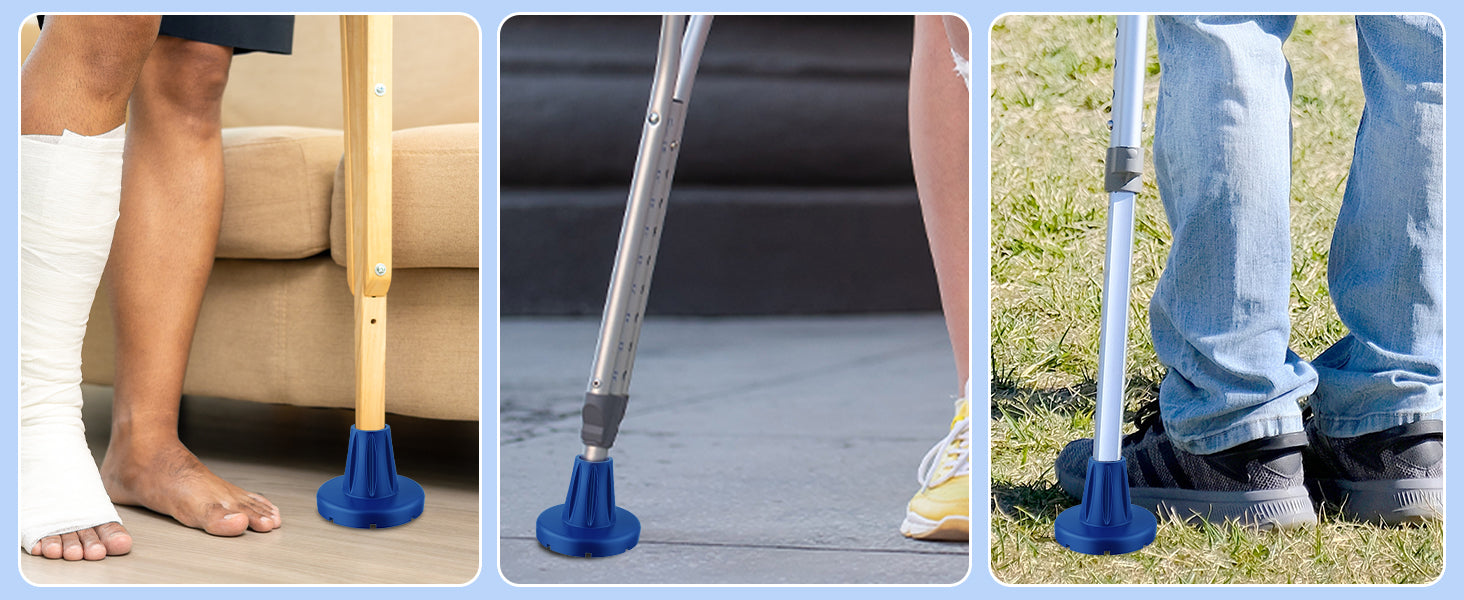 • Universal Compatibility: Specifically designed for 7/8" (22 mm) aluminum/wood crutches and walking sticks, these crutch tips perform reliably on indoor floors and outdoor terrain including grass, gravel, and sand