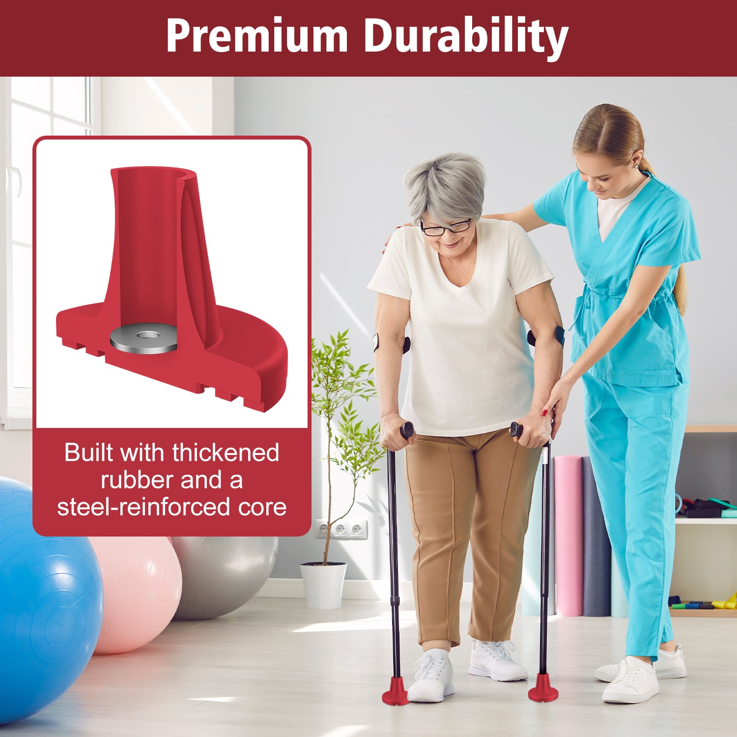 • Premium Durability: Built with thickened rubber and a steel-reinforced core, the heavy-duty crutch foot pad resists cracking and abrasion while delivering extended durability over standard tips