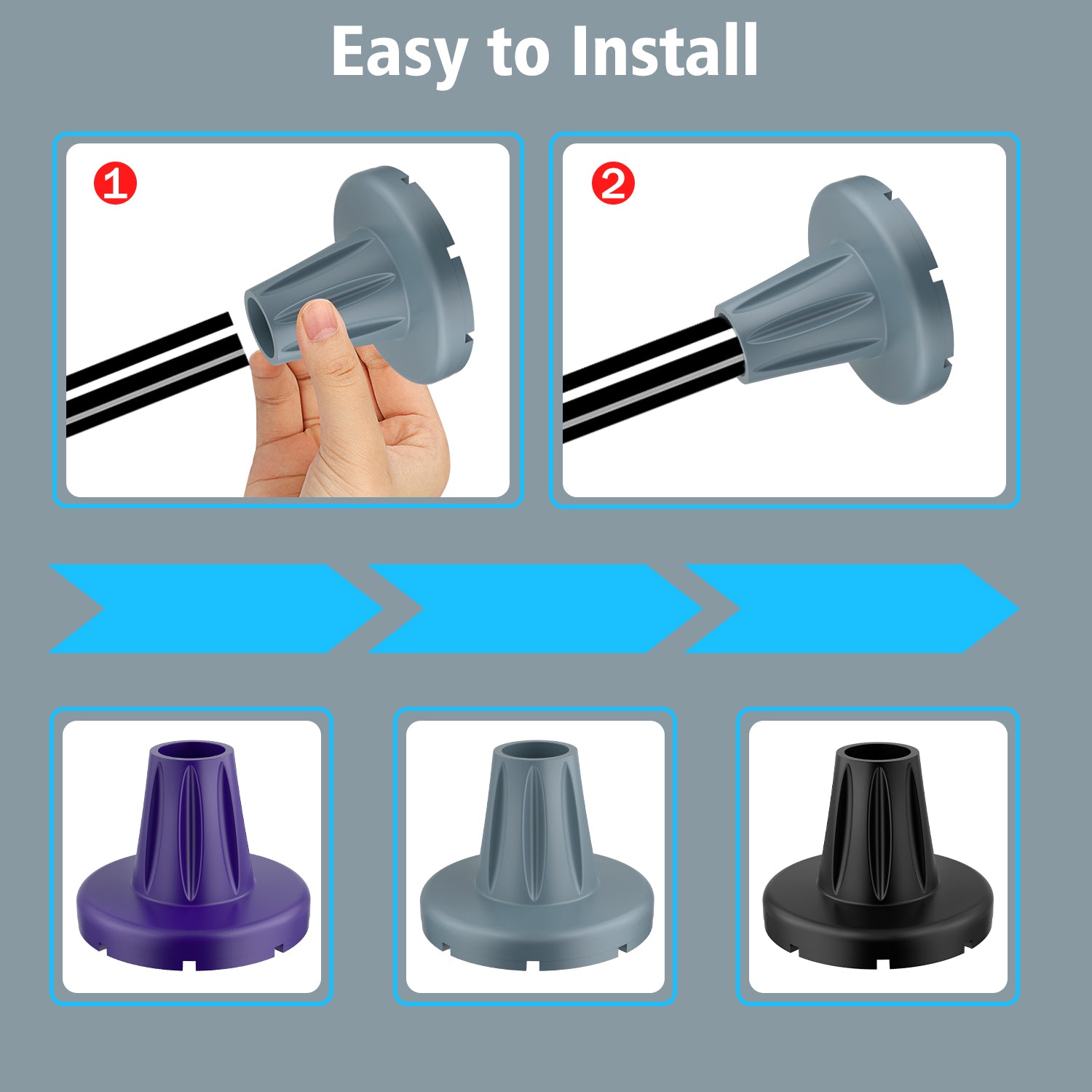 - Effortless Installation: No tools required — Simply align the crutch base with your shaft and secure with a push-twist motion; compatible with most 7/8" (22 mm) mobility aids