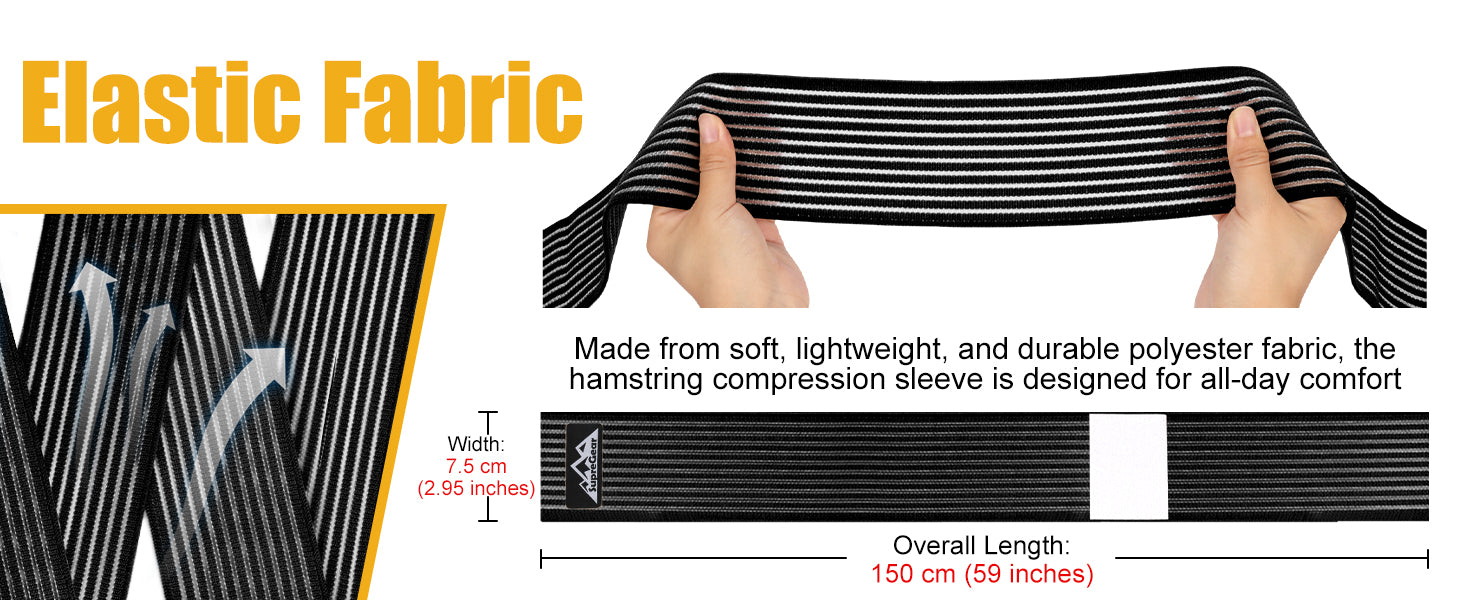 - High-Elasticity and Breathable: Made from soft, lightweight, and durable polyester fabric, the hamstring compression sleeve is designed for all-day comfort; the breathable material prevents overheating, while its flexible structure ensures a snug fit without slipping or rolling down during movement