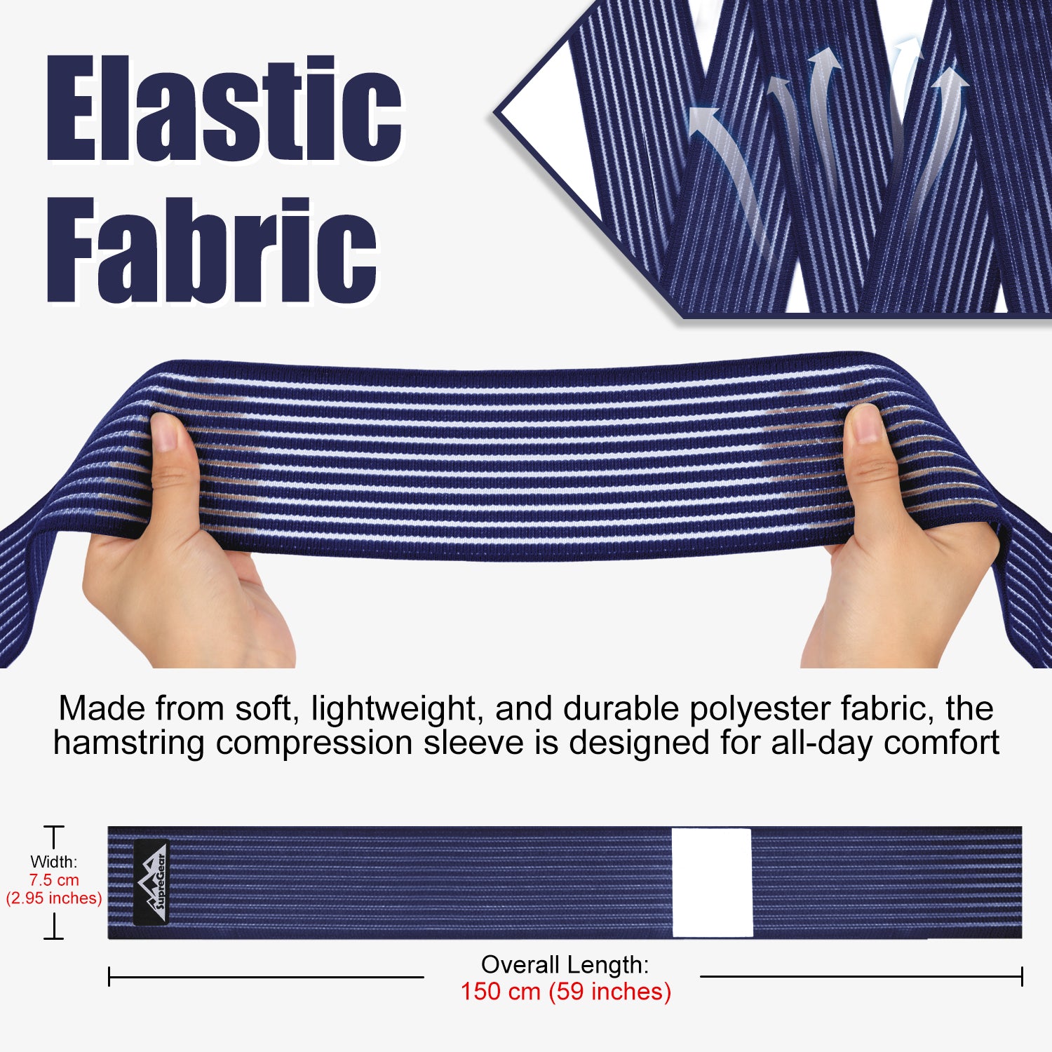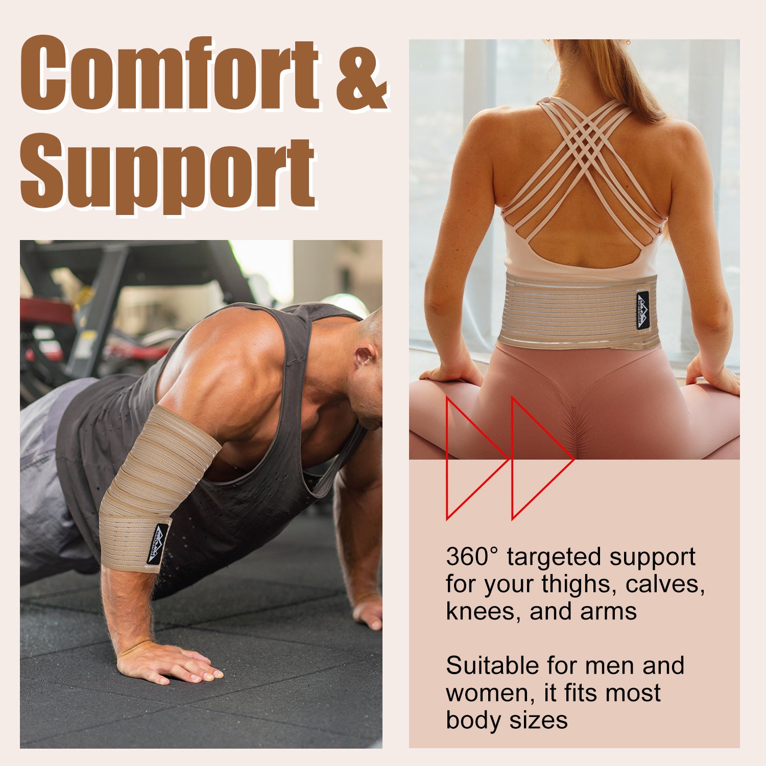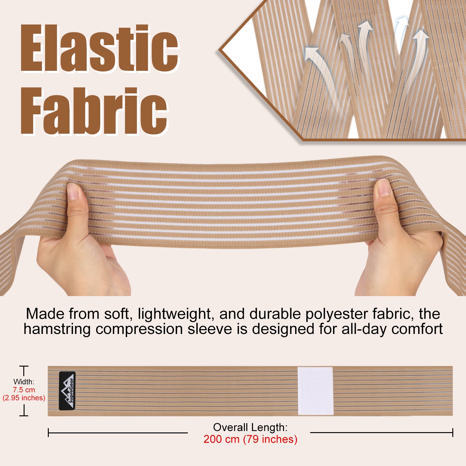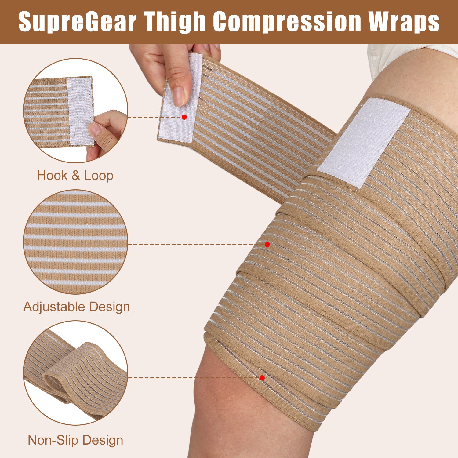 - Multipurpose and Full Coverage Support: SupreGear thigh compression wraps offer 360° targeted support for your thighs, calves, knees, and arms; designed with a length of 200 cm (79 inches) and a width of 7.5 cm (2.95 inches), these compression bandages ensure a secure fit for various body areas