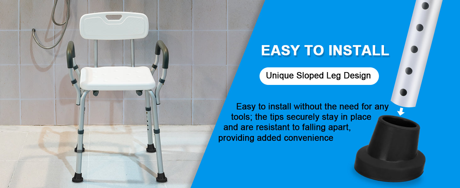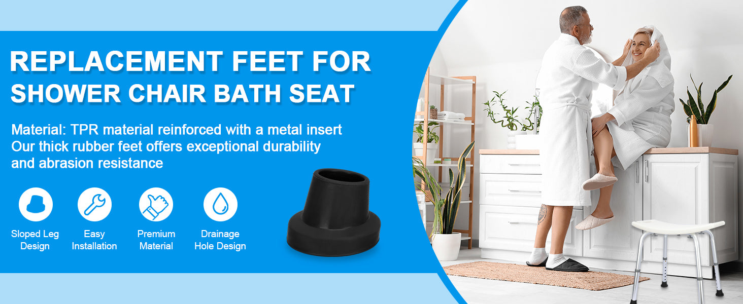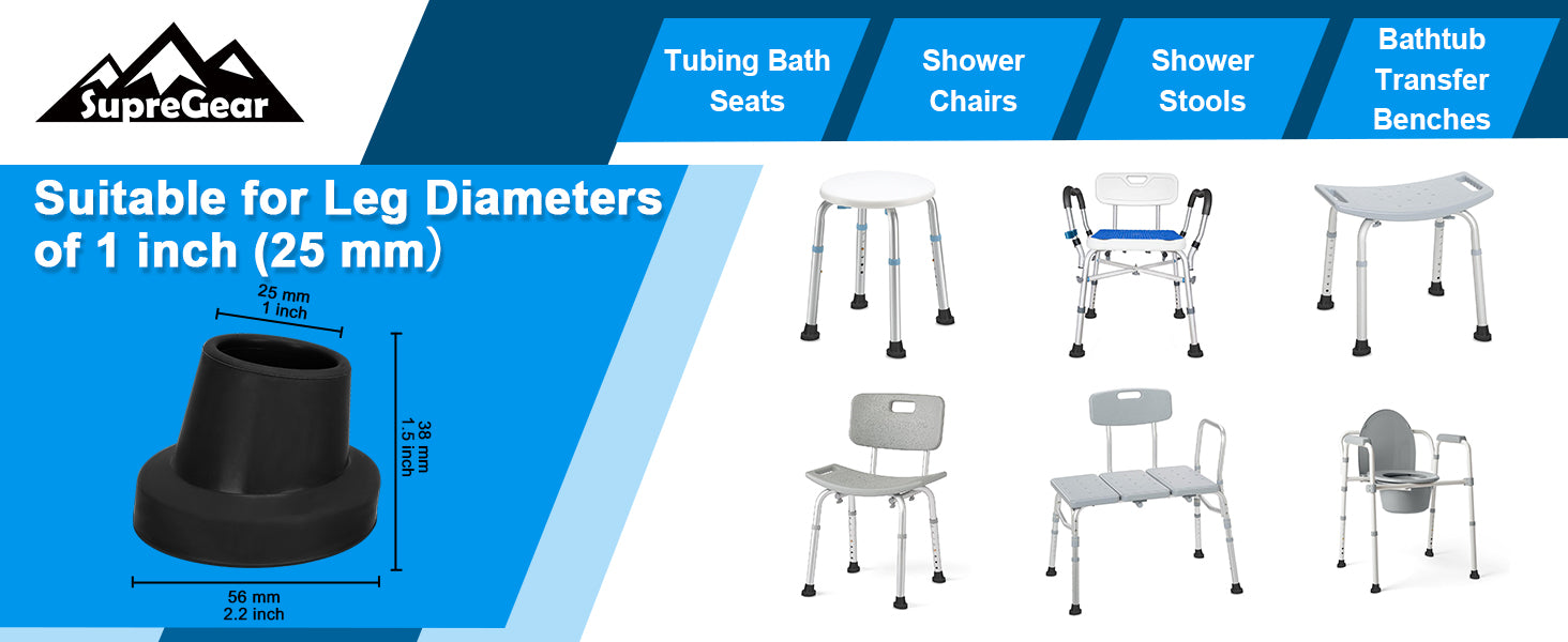 - 4 Slope Replacement Chair Feets: The inside diameter is 1 inch (25 mm); designed to fit bath shower chairs, shower stools, transfer benches and step ladder with 1" leg tubing; each pack includes four heavy-duty replacement tips for a reliable upgrade