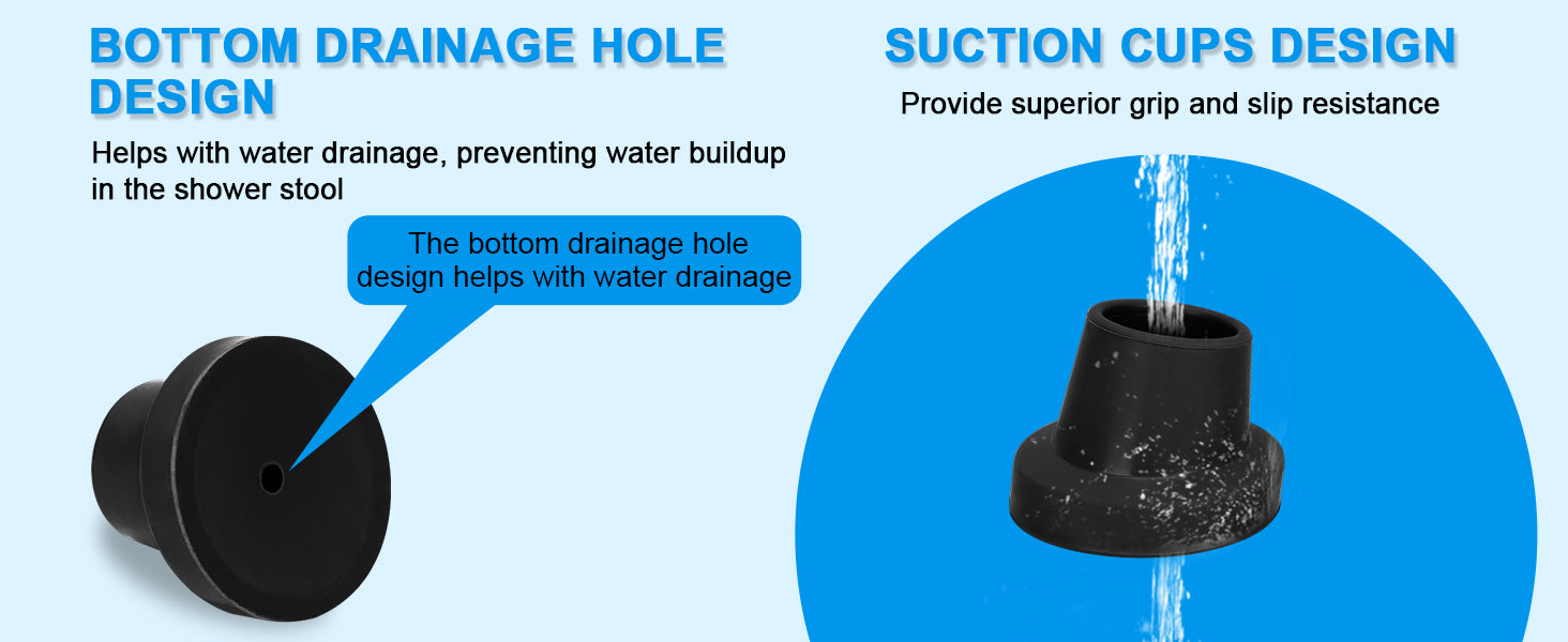- Enhanced Safety and Stability: The sloped-leg design chair feet help distribute weight more evenly for better balance; built-in drainage holes prevent water buildup, while suction cup bottoms provide strong grip and slip resistance on wet surfaces